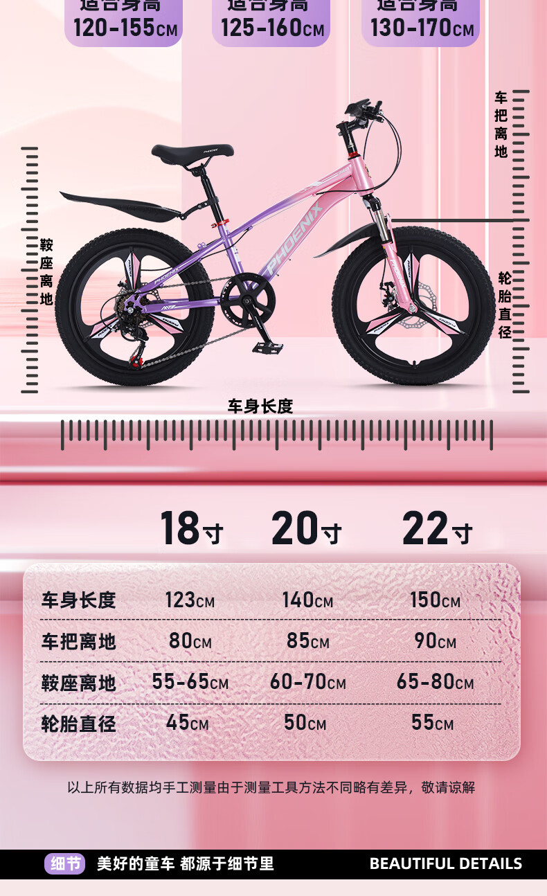凤凰20寸单速山地自行车-星际(辐条轮)(单位:辆) 粉紫色