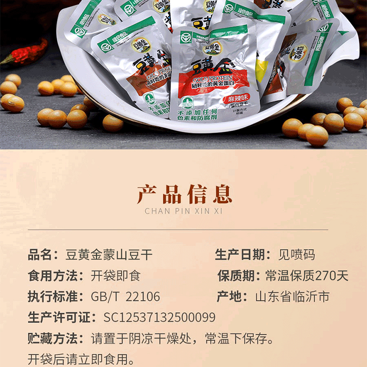 豆黄金豆干 手撕豆干500g小吃休闲麻辣味豆干零食小包装散装500g/30袋*2组 黄色
