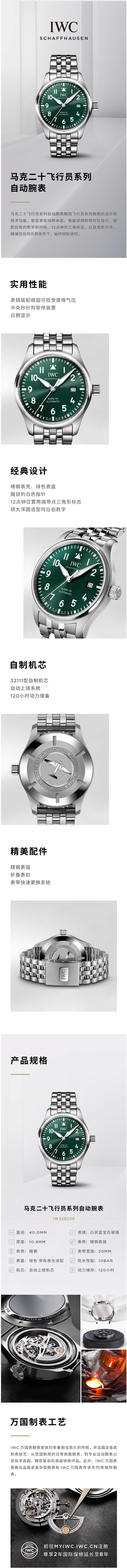 IWC万国 马克二十飞行员系列机械男士腕表 IW328206(单位1块) 绿茶