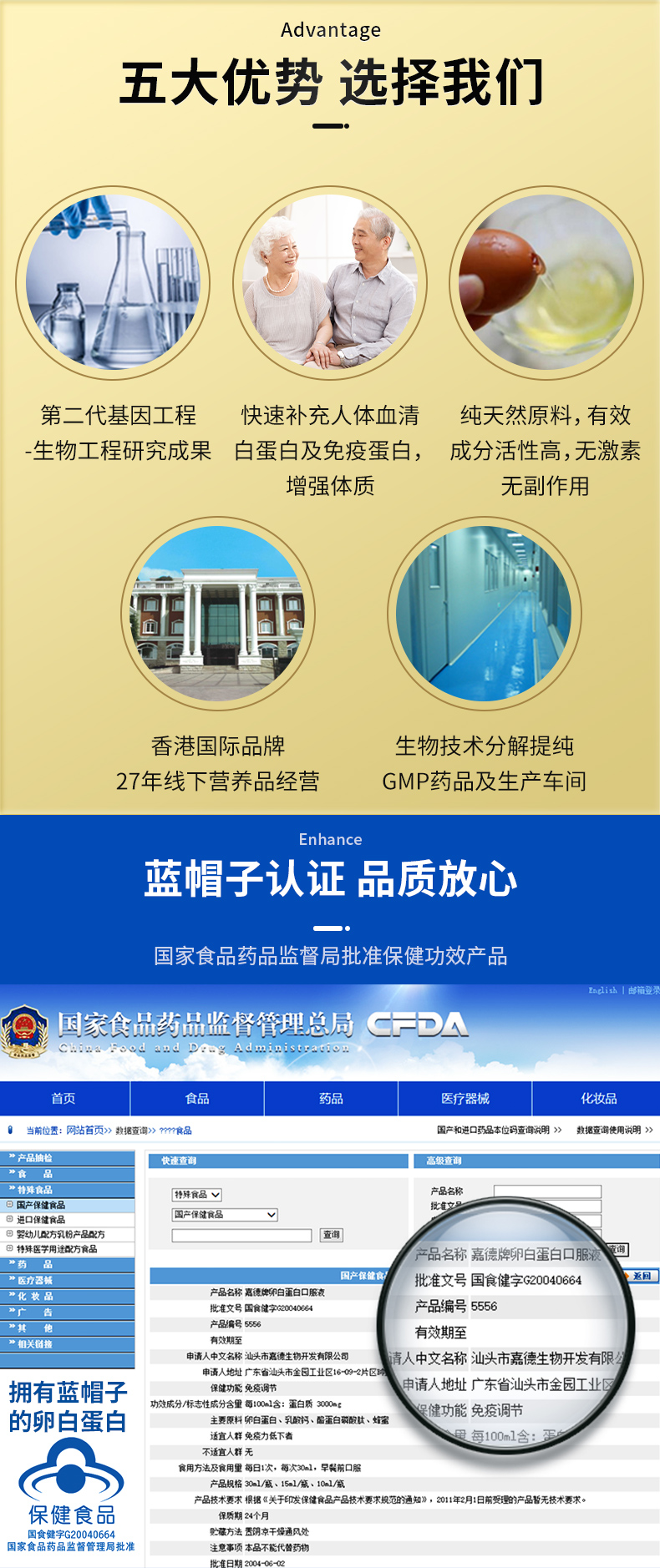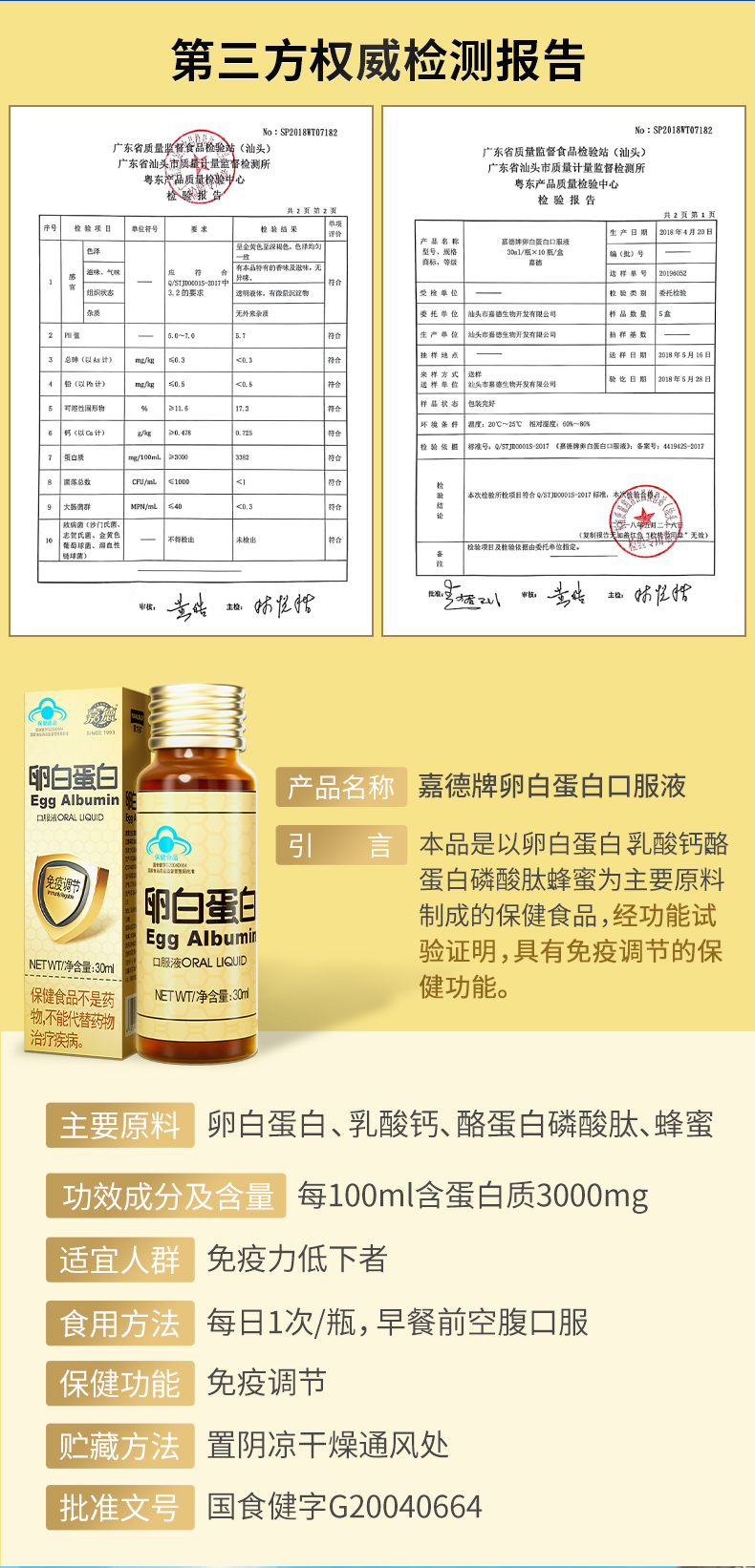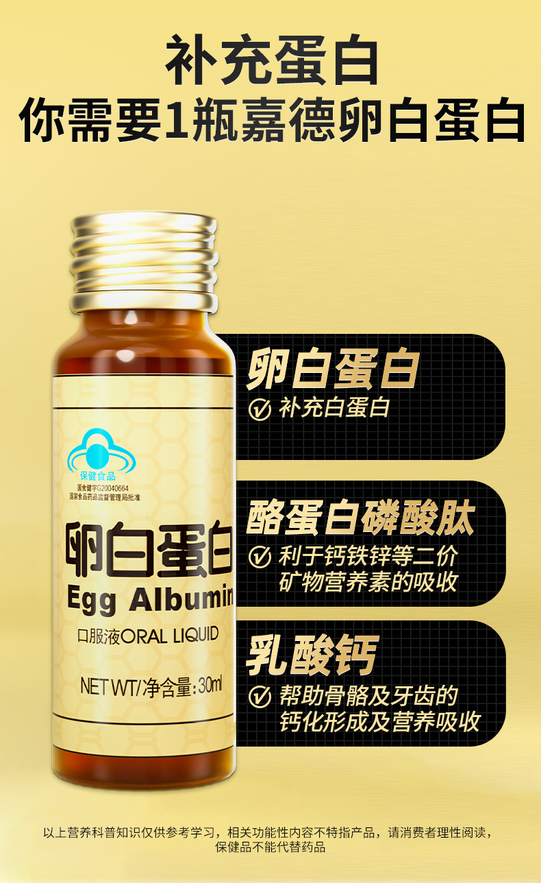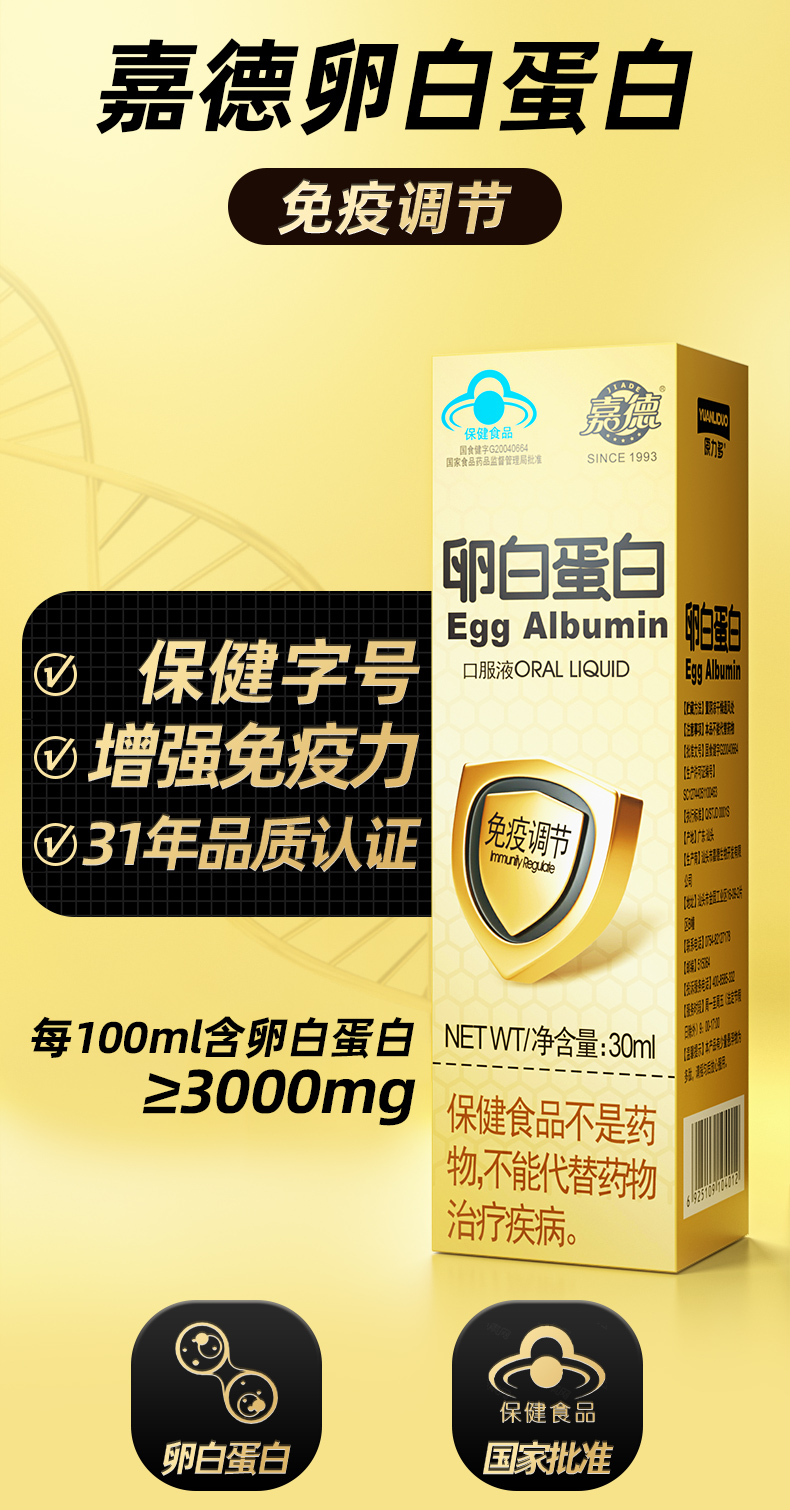 嘉德卵白蛋白口服液 增强免疫力 术后营养补充 老年人营养品单位:盒 金色