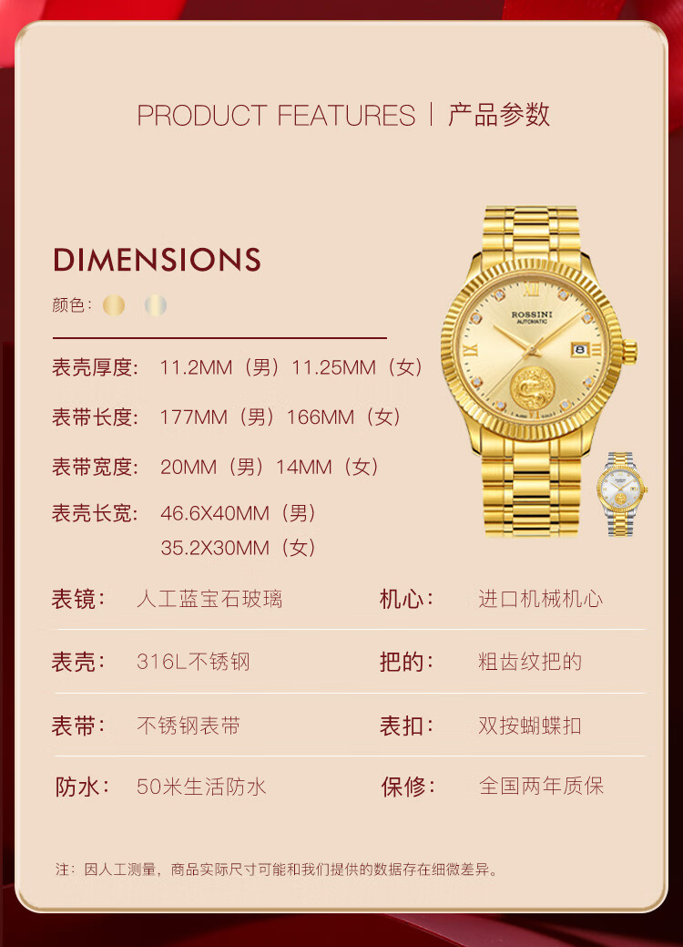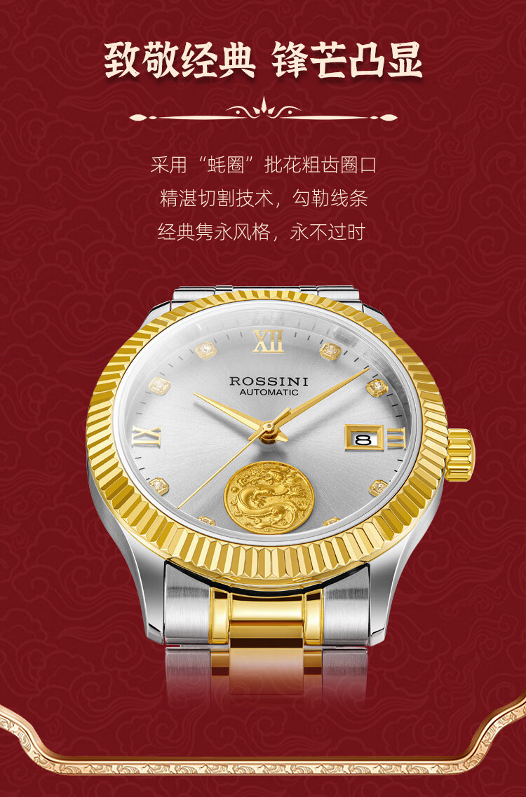 Rossini罗西尼 启迪系列 机械手表龙凤呈祥情侣款女表50170T01A(单位1块) 金色
