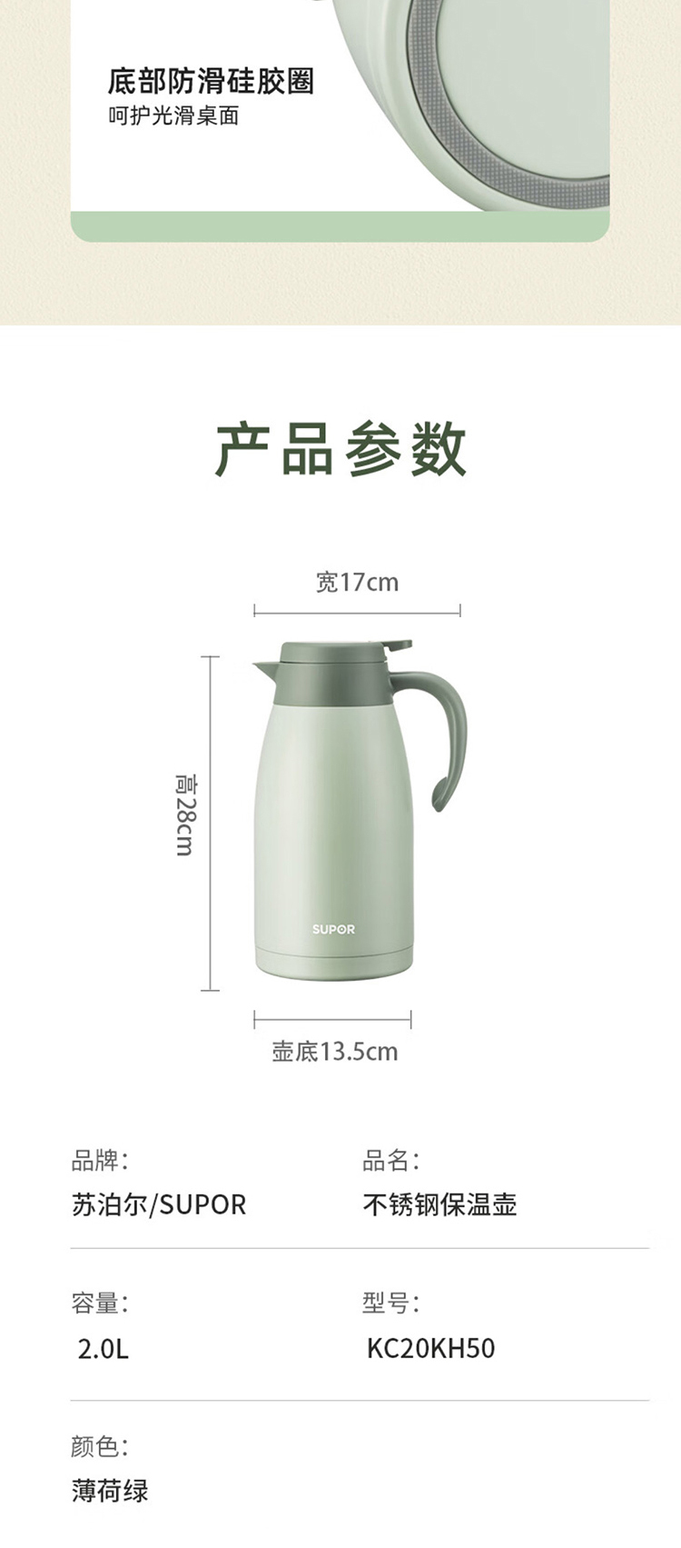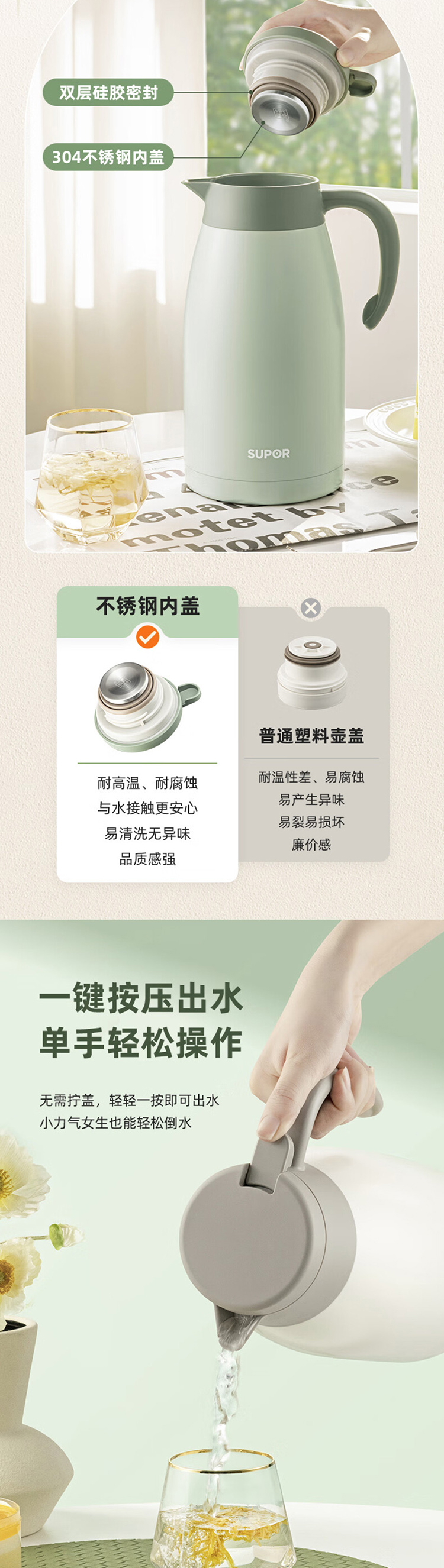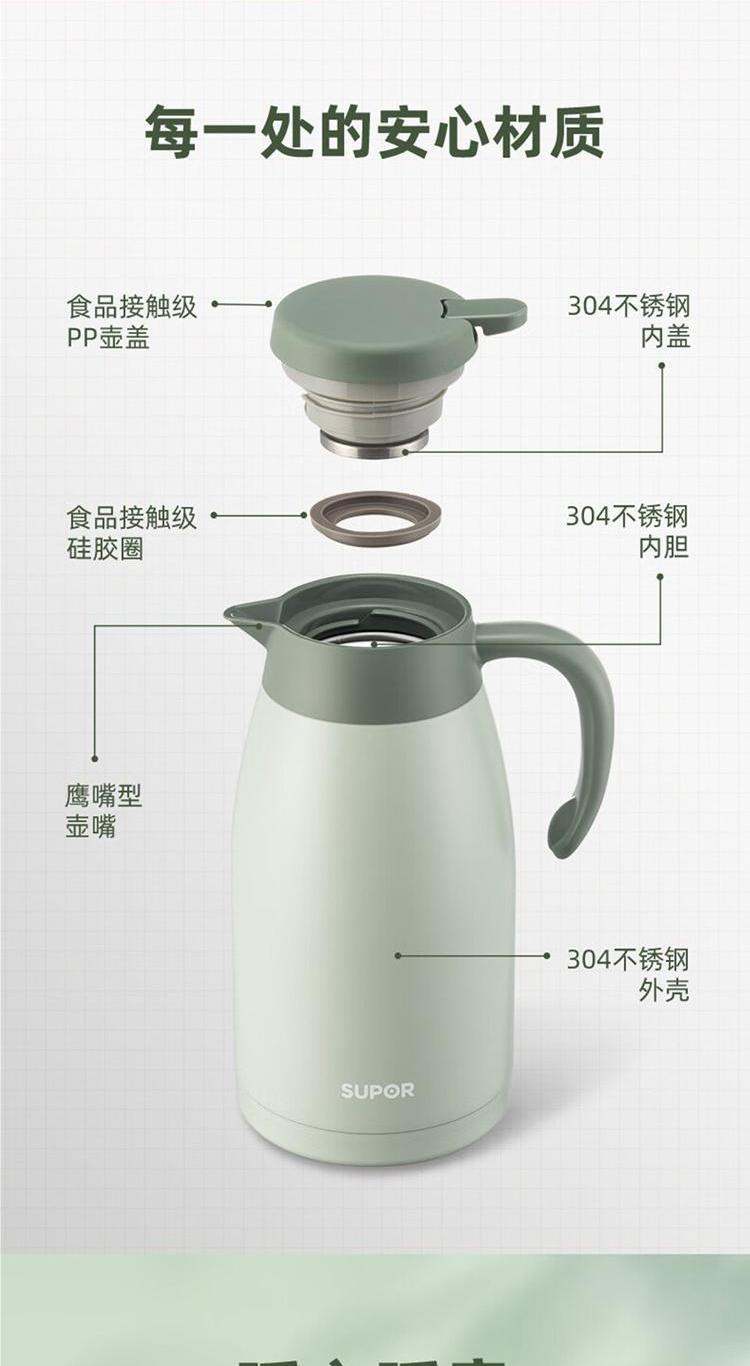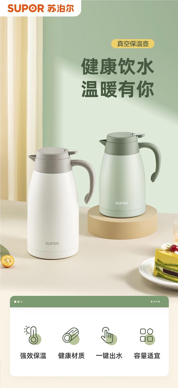 苏泊尔(SUPOR)真空保温壶 2.0L.KC20KH50(单位:个) 薄荷绿