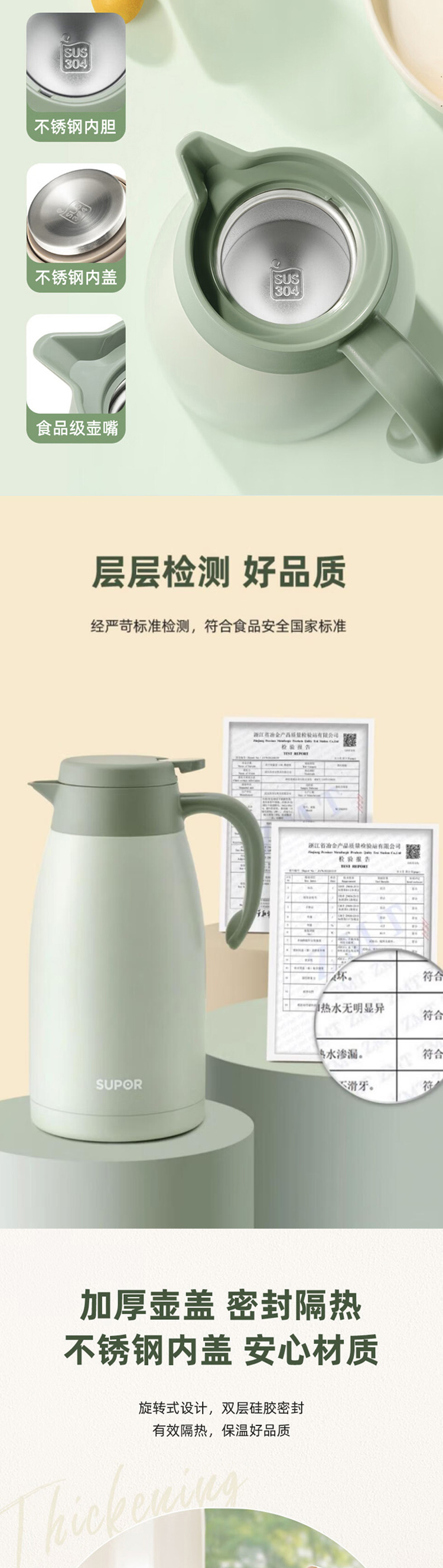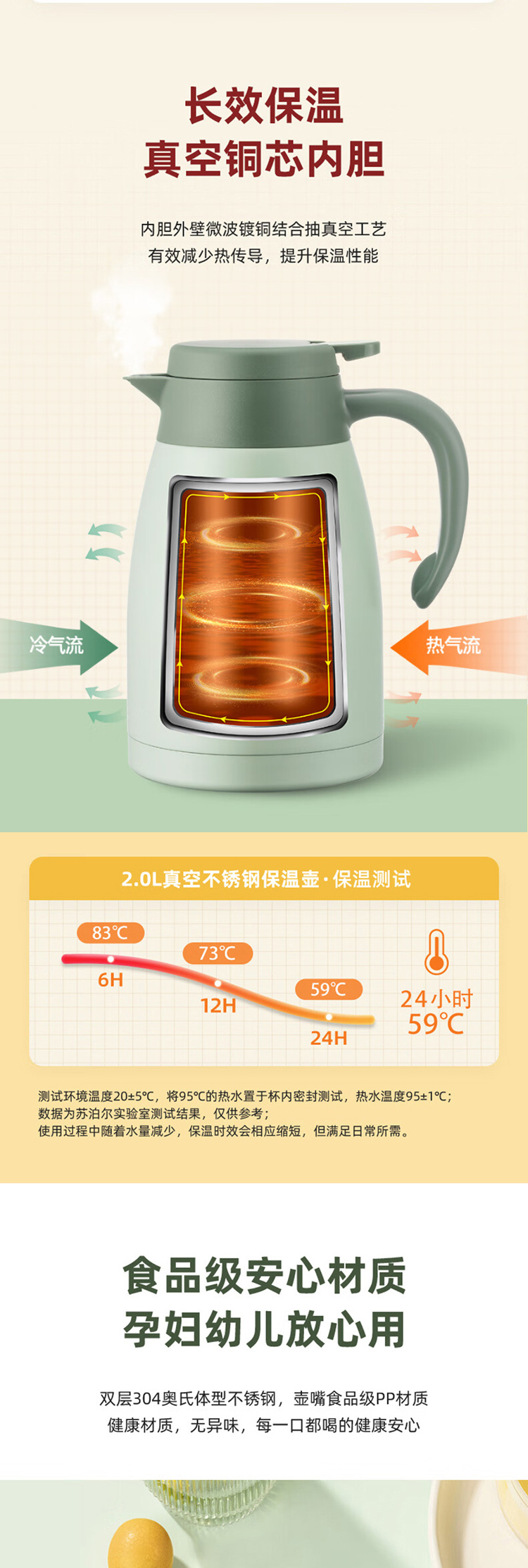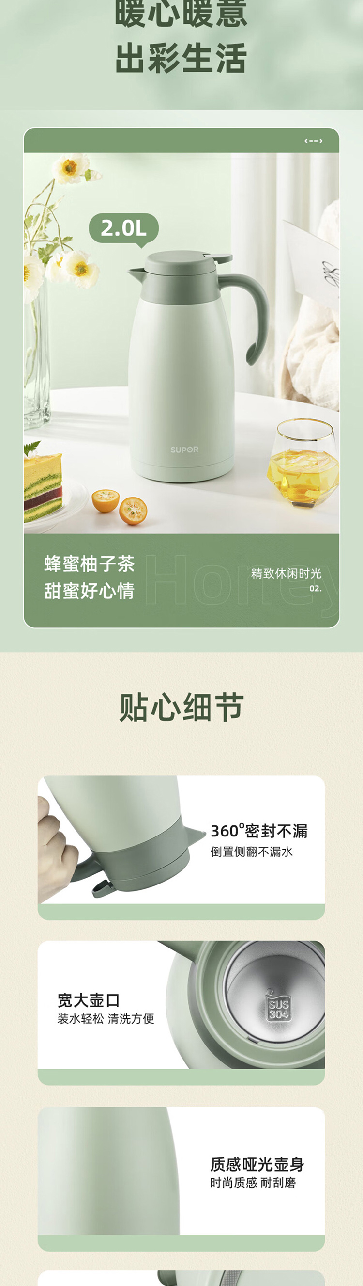 苏泊尔(SUPOR)真空保温壶 2.0L.KC20KH50(单位:个) 薄荷绿