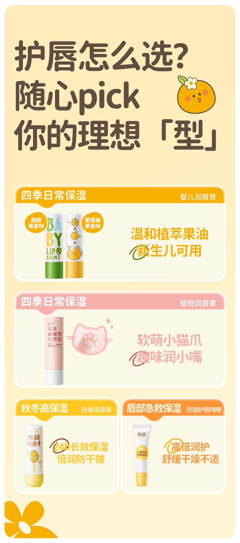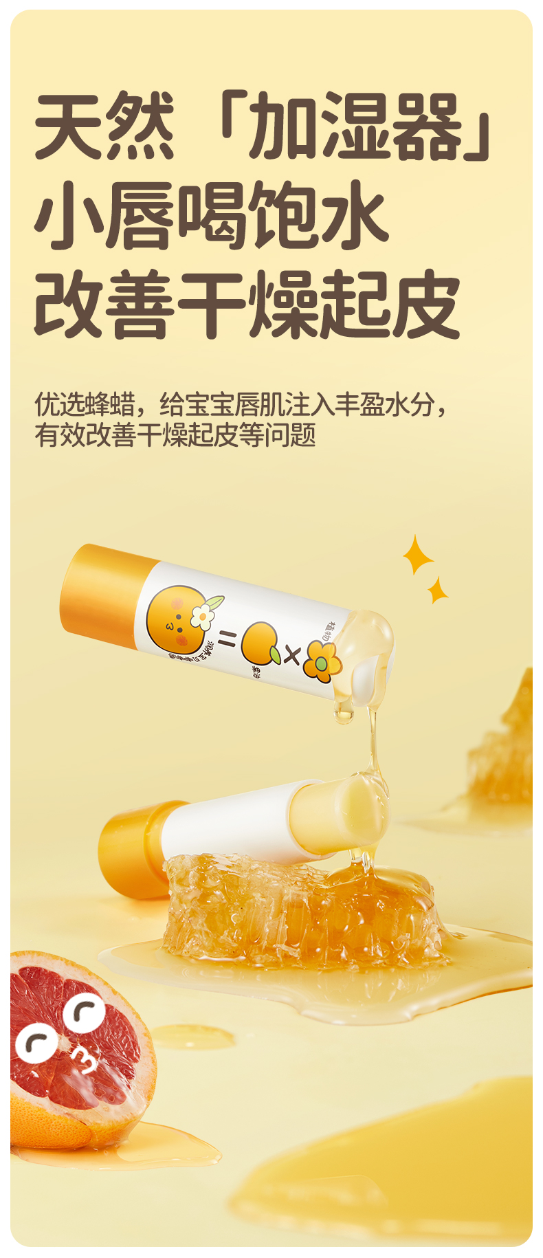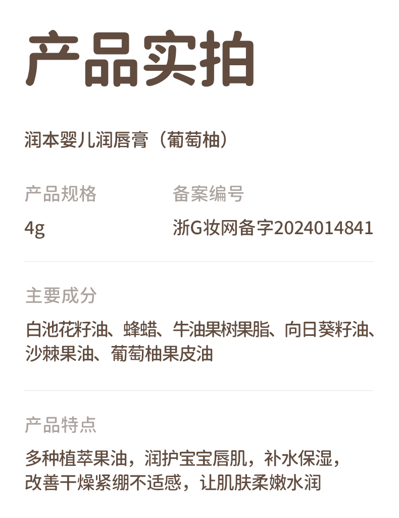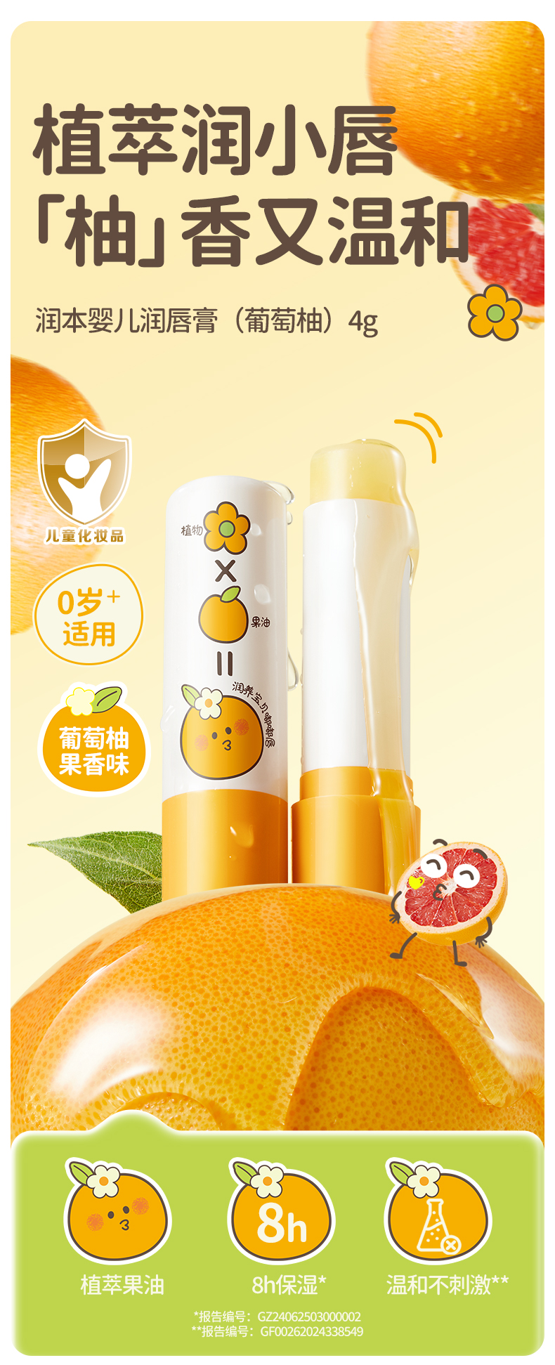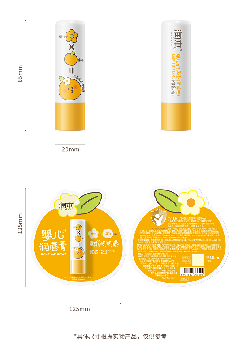 润本(RUNBEN)婴儿润唇膏4g*2支(葡萄柚) 单位:支 黄色