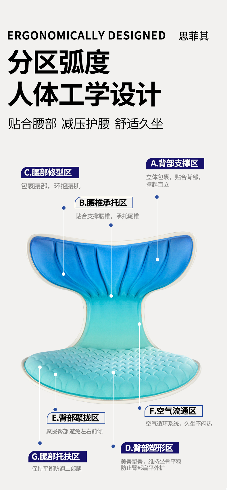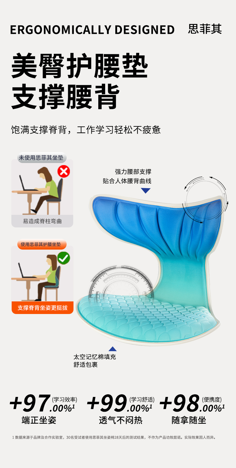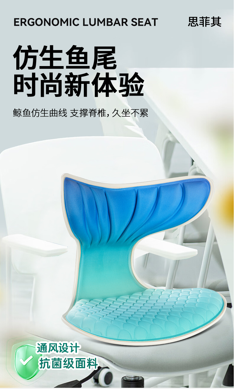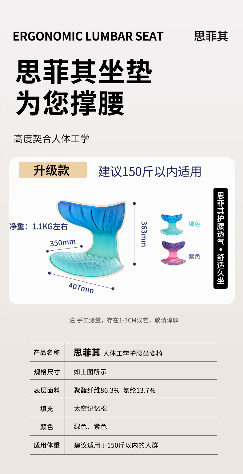 思菲其护腰坐垫s015美人鱼款久坐神器办公室上班减压坐垫紫色靠垫1.1kg/个 单位:个 紫色