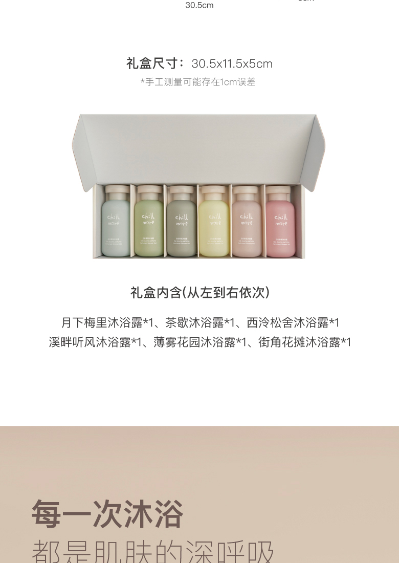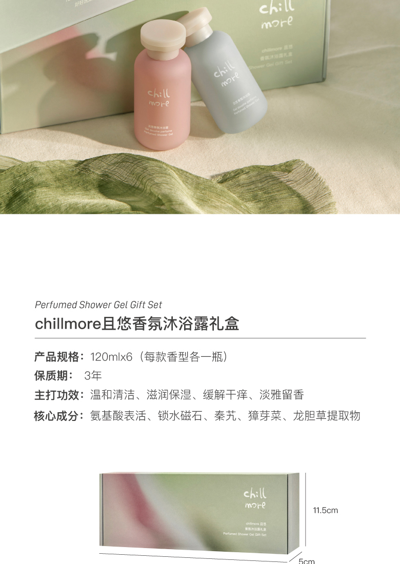 且悠(chillmore)氨基酸香氛沐浴露礼盒便携旅行装全香型120ml*6生日伴手礼 香氛沐浴露礼盒(单位:盒) 混色