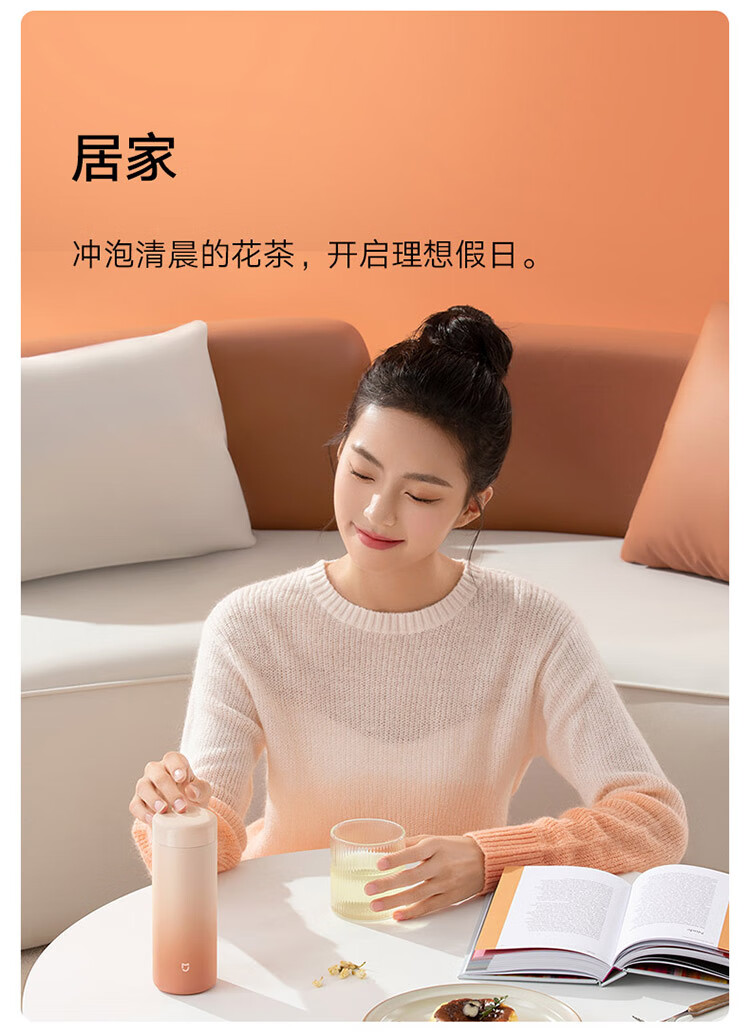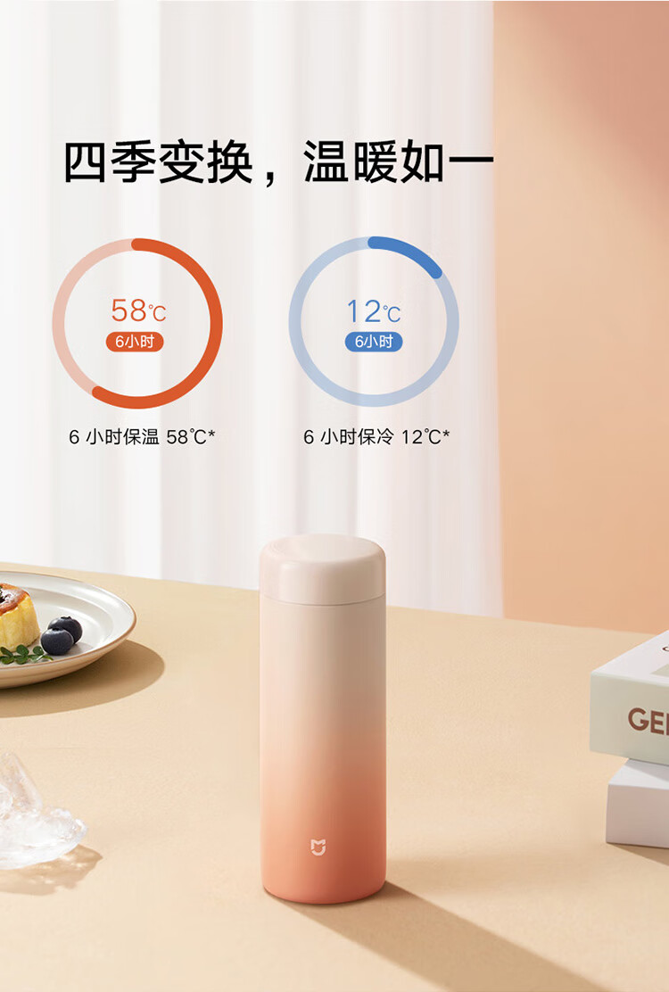 米家(MIJIA) 保温杯口袋版 雪山落日MJKDB01PL 单位:个 350ml 渐变粉色
