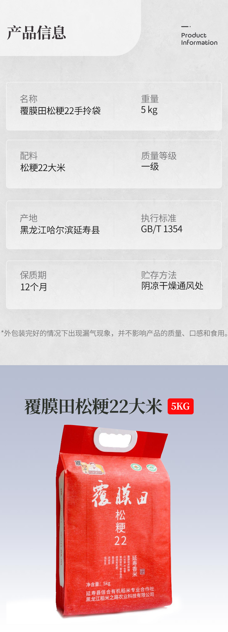 覆膜田优质松粳22手拎袋5kg(袋装塑封) 图片色