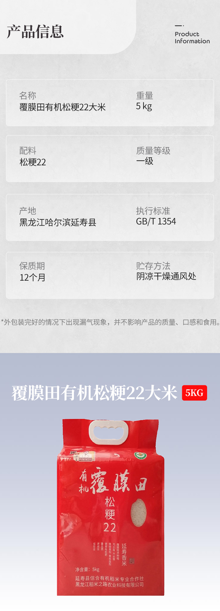 覆膜田有机松粳22(袋装塑封)5kg 图片色