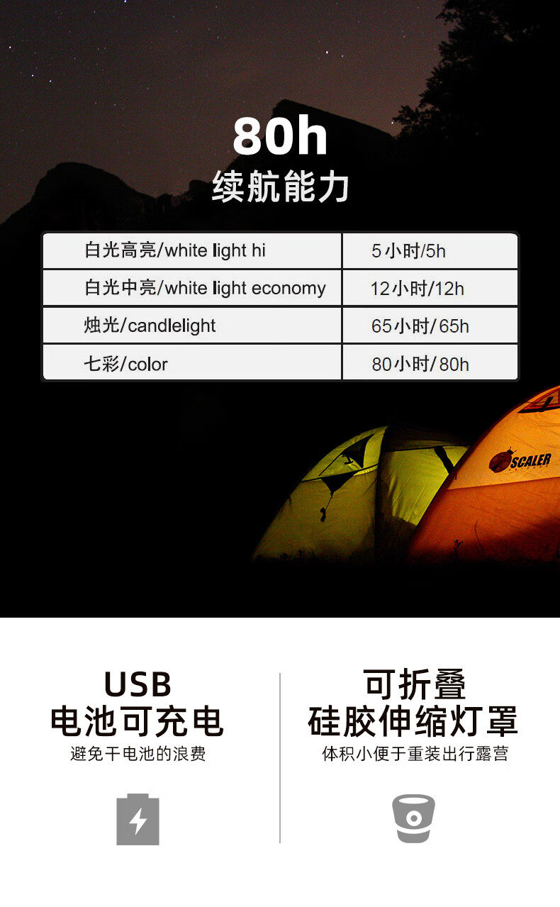 思凯乐户外 Scaler LED折叠硅胶七彩灯z9933010 蓝色 蓝色