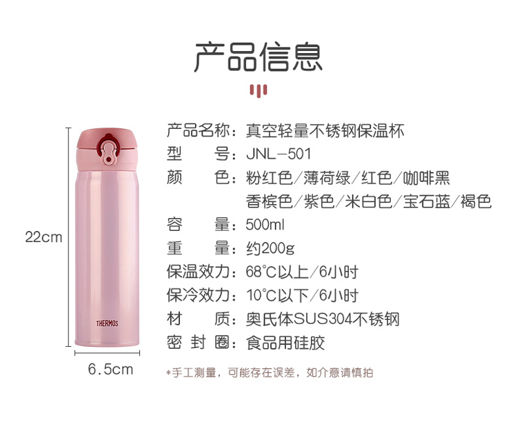 膳魔师THERMOS高真空不锈钢保温杯JNL-501-DPL 500ml 紫色 葡萄紫