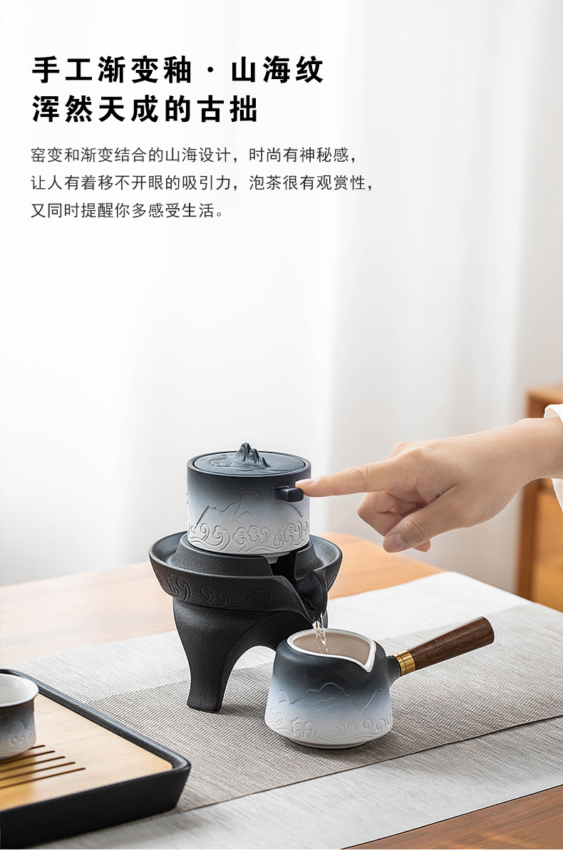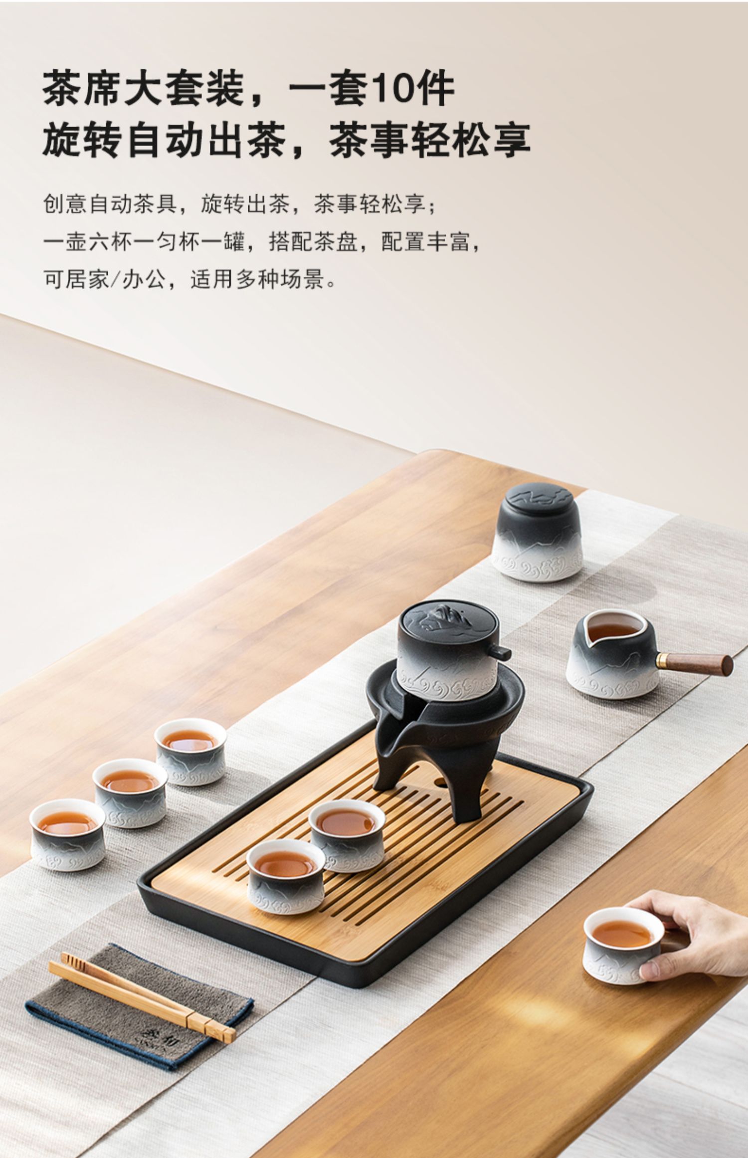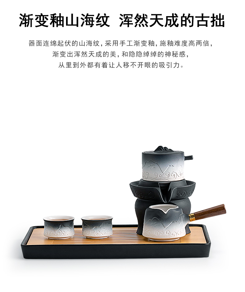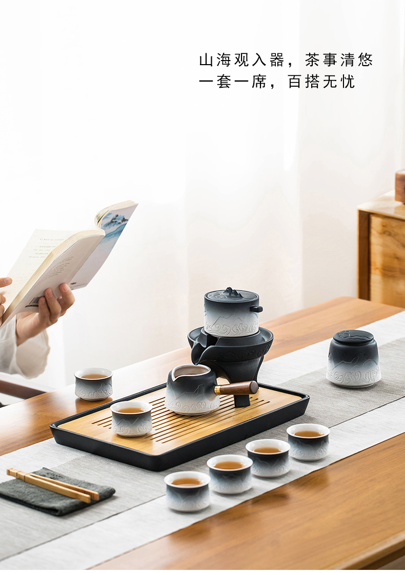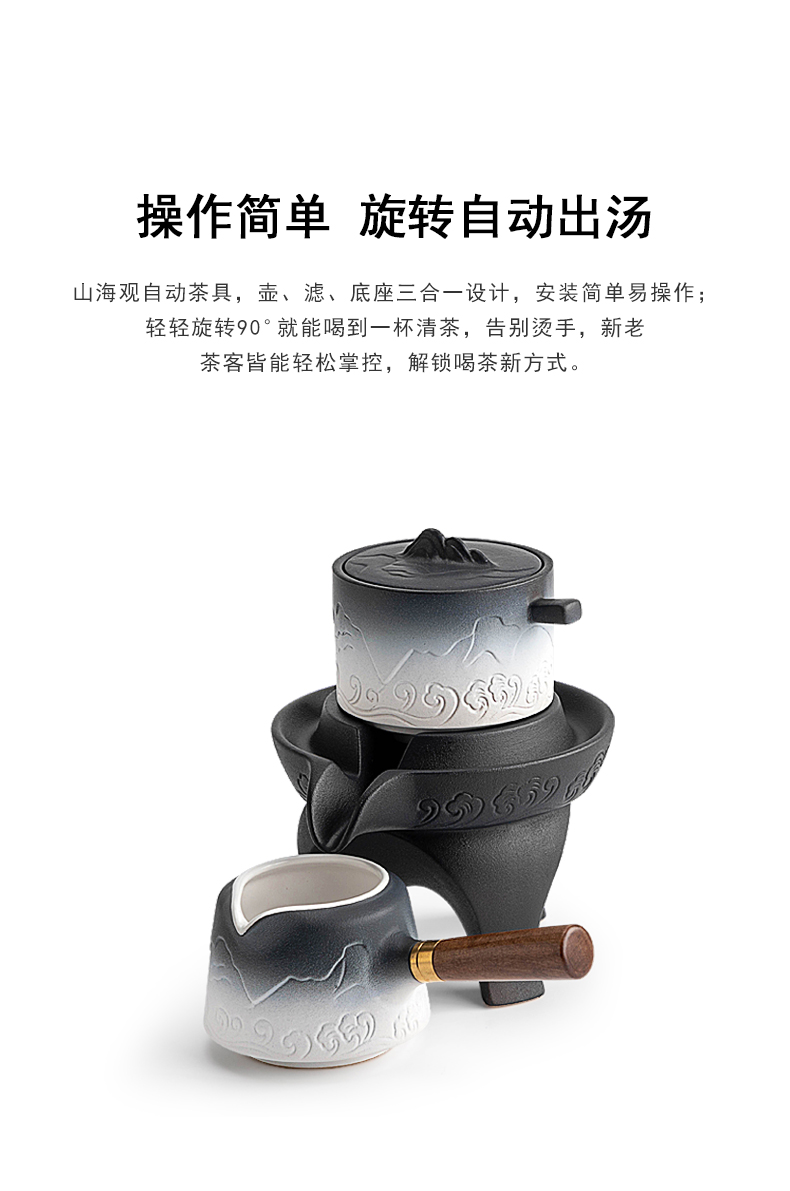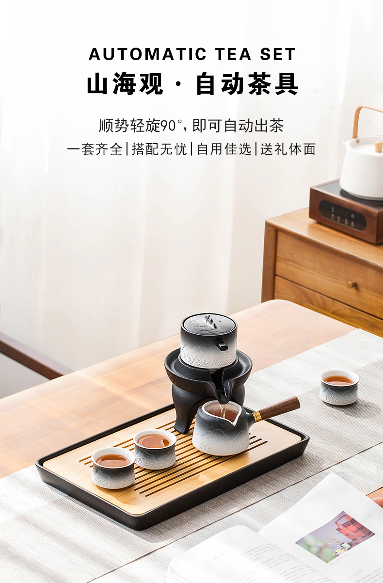 叁旬山海观自动功夫茶具套装家用懒人泡茶神器茶壶礼盒山海观自动茶具白砂釉+茶盘(单位:套) 白色