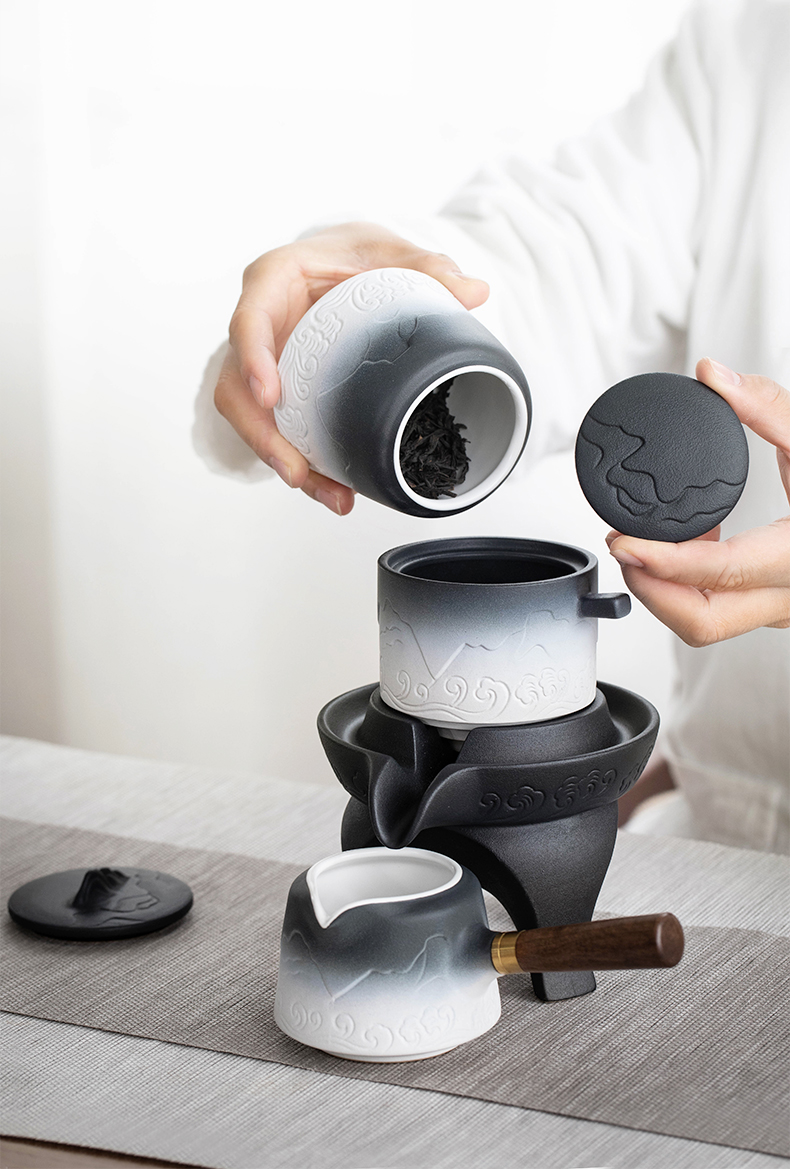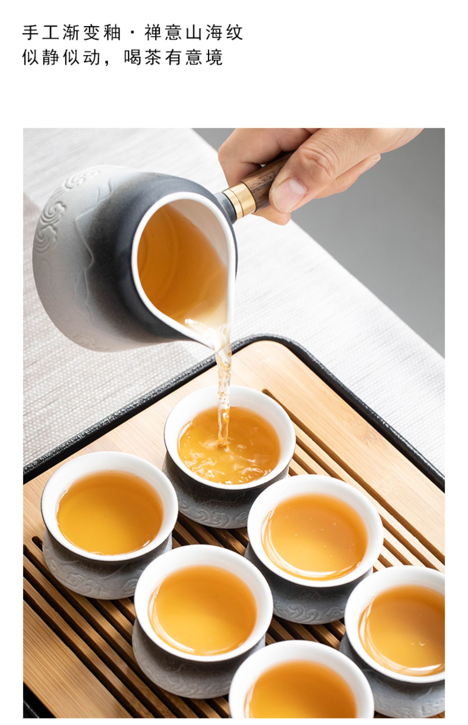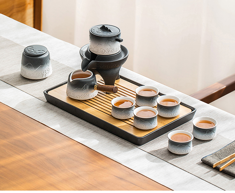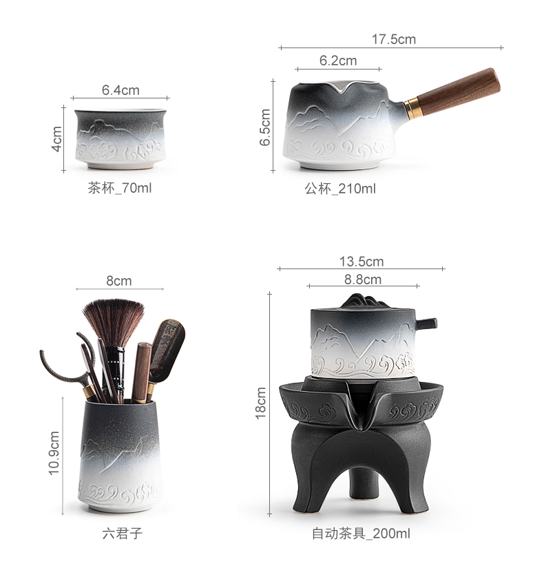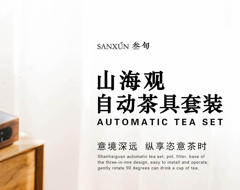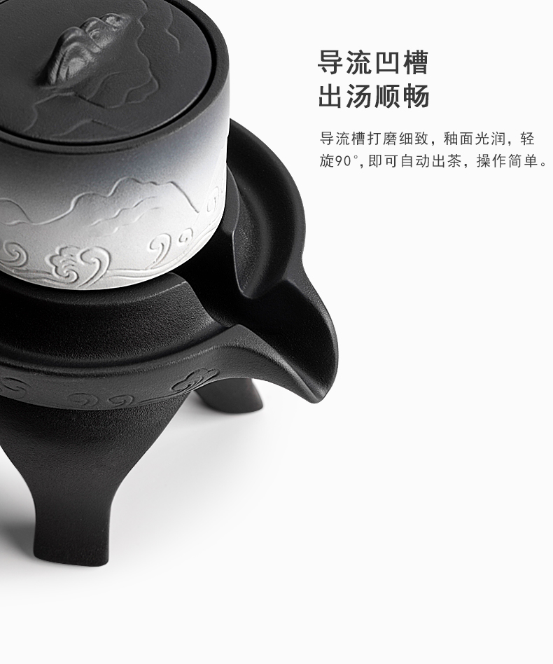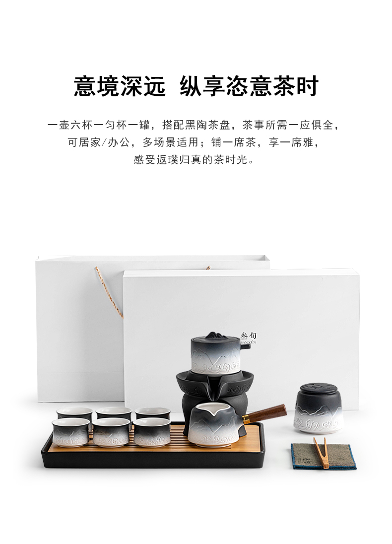 叁旬山海观自动功夫茶具套装家用懒人泡茶神器茶壶礼盒山海观自动茶具白砂釉+茶盘(单位:套) 白色