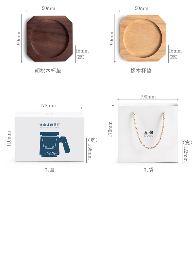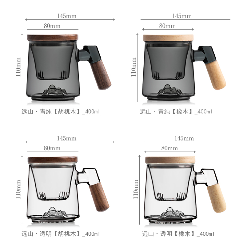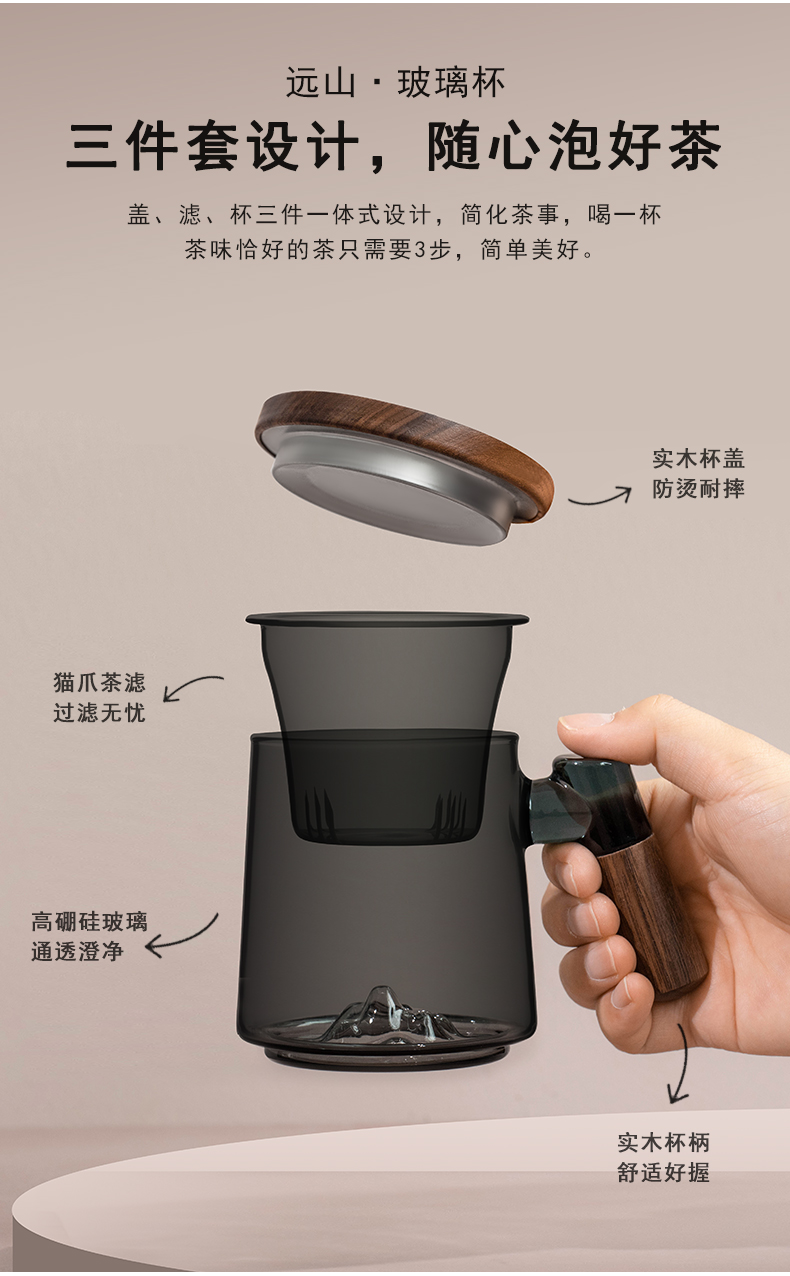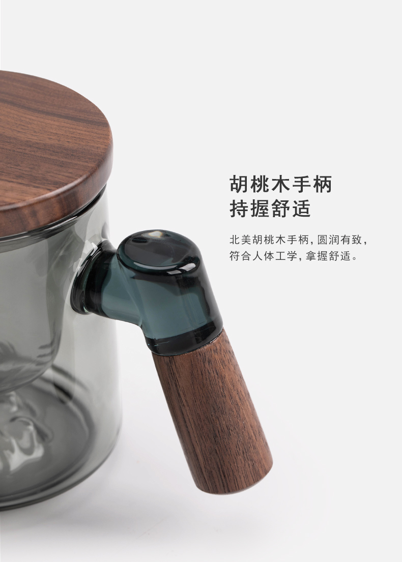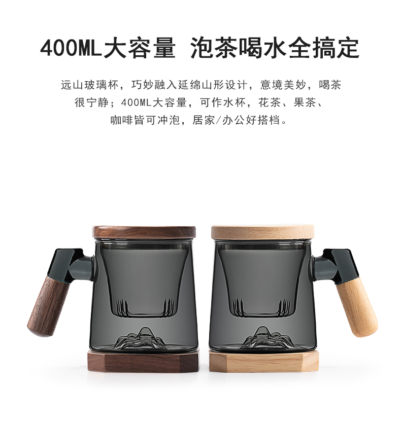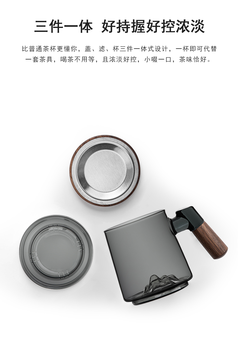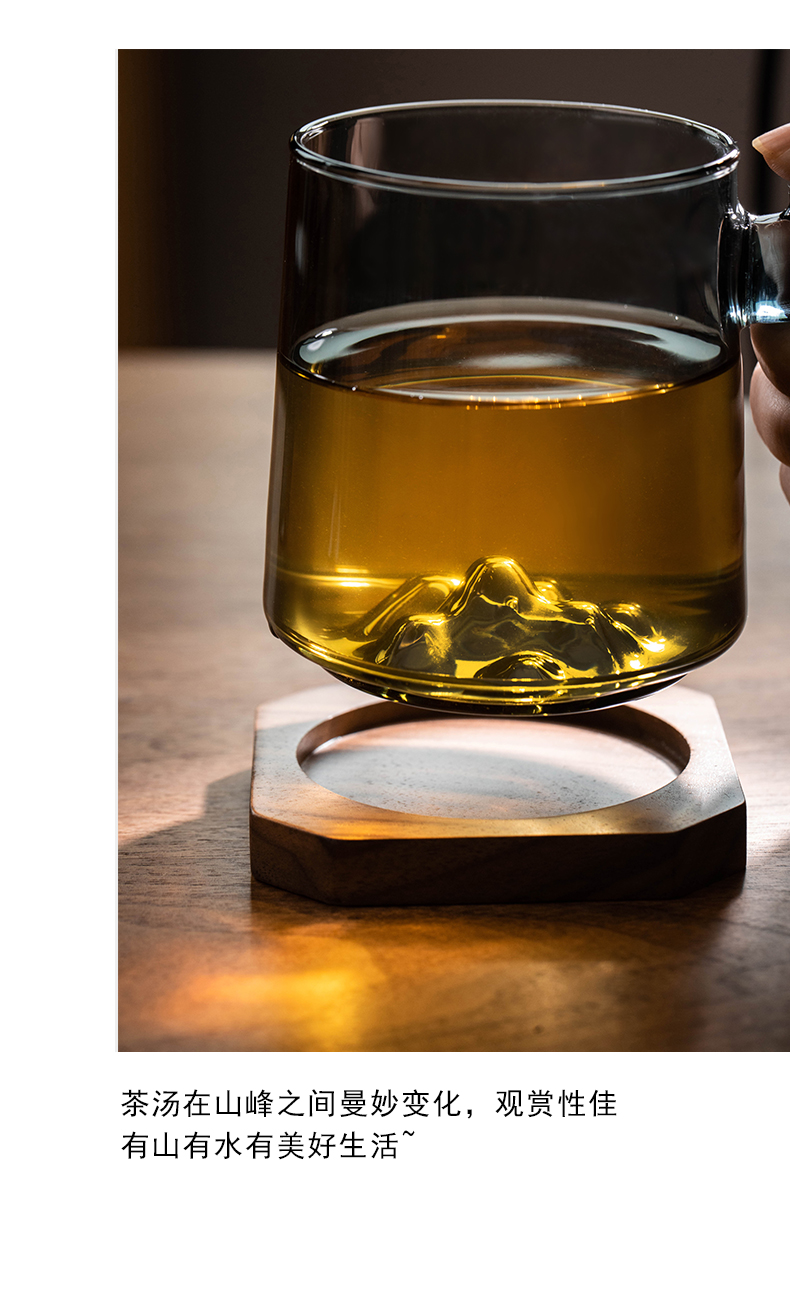 叁旬日式玻璃远山水杯加厚耐热办公室泡茶杯茶水分离个人专用喝茶杯远山玻璃茶杯【胡桃木】(单位:个) 褐色