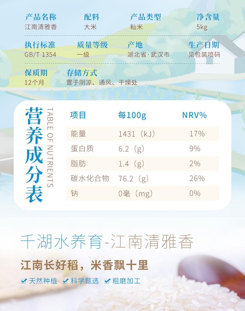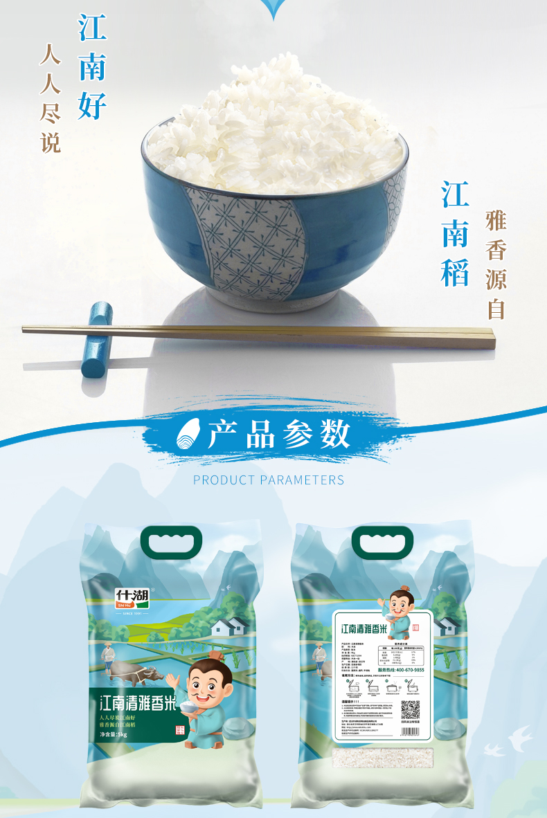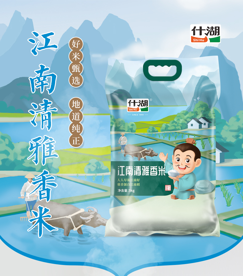 什湖(SHIHURICE)江南清雅香米5kg(知音款)当季新米 (单位:袋) 天蓝色