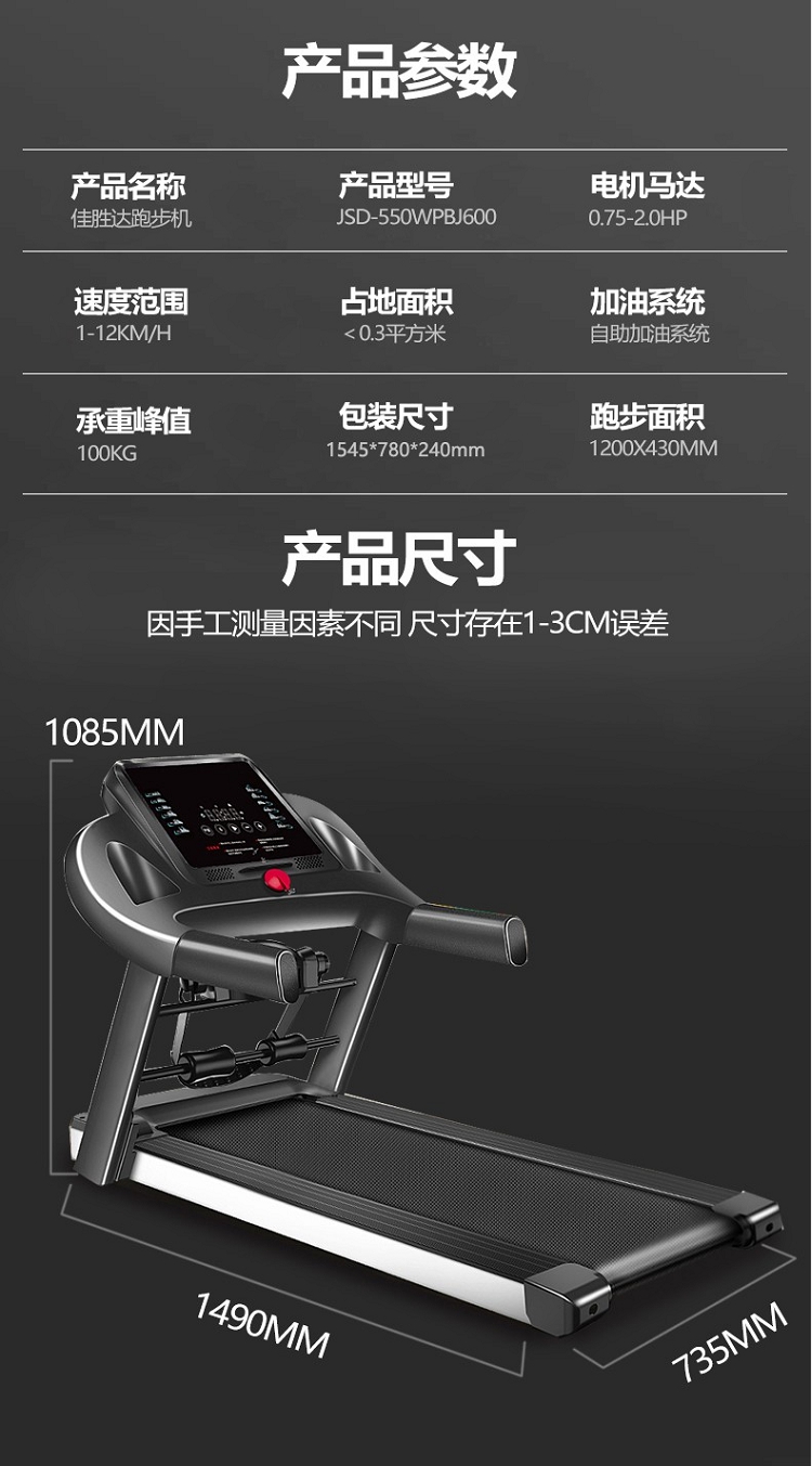 佳胜达 跑步机JSD-550WPBJ600家用静音智能室内健身多功能走步机大跑台 JSD-550WPBJ600多功能