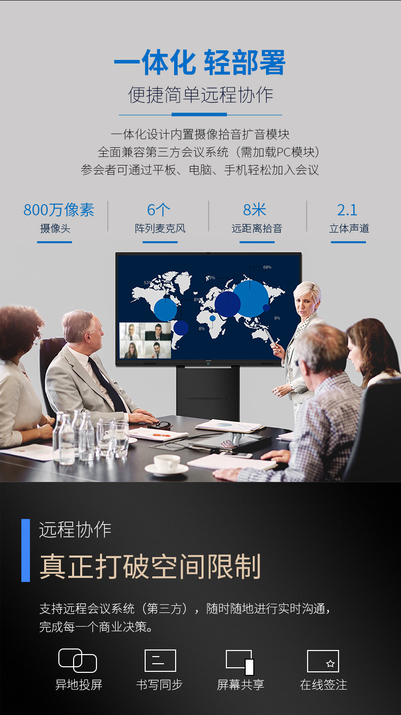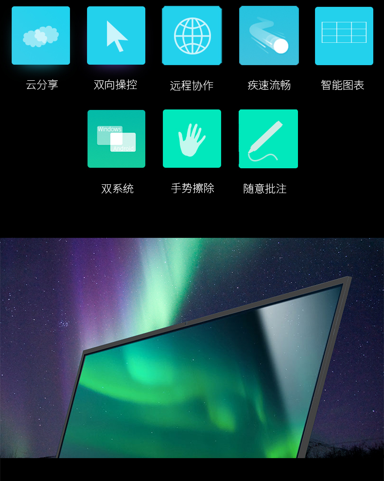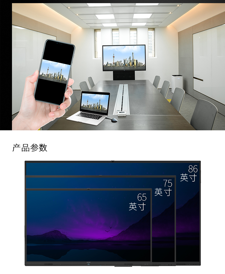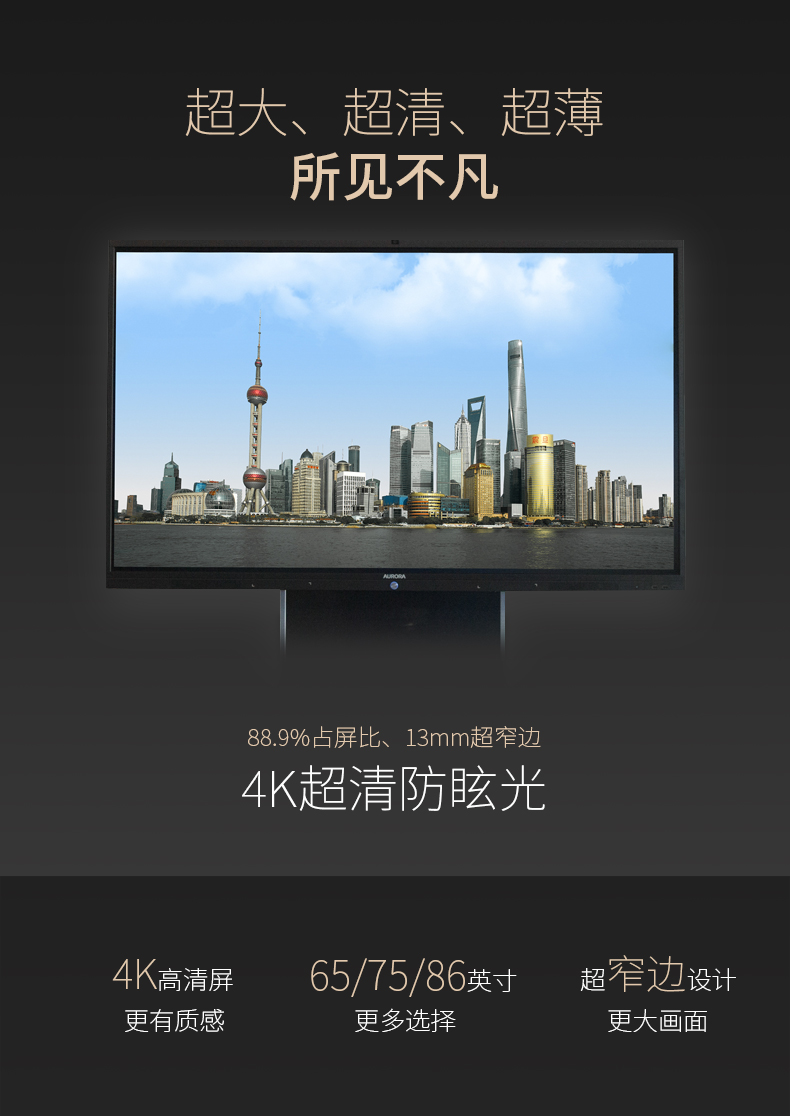 震旦AURORA 智能会议平板 商务大屏 办公电子白板无线同屏交互式平板电视 86英寸标配SD86CA 曜石黑