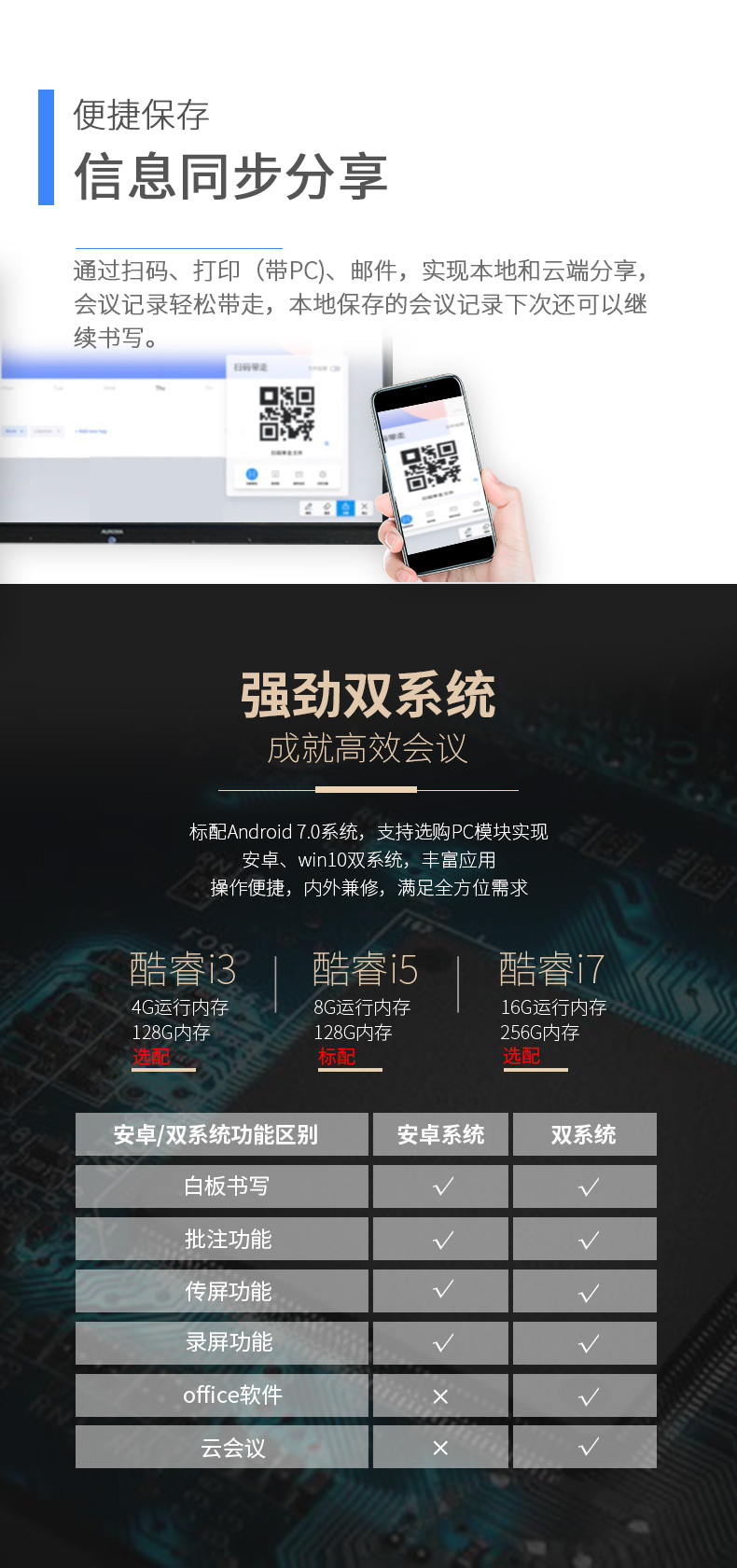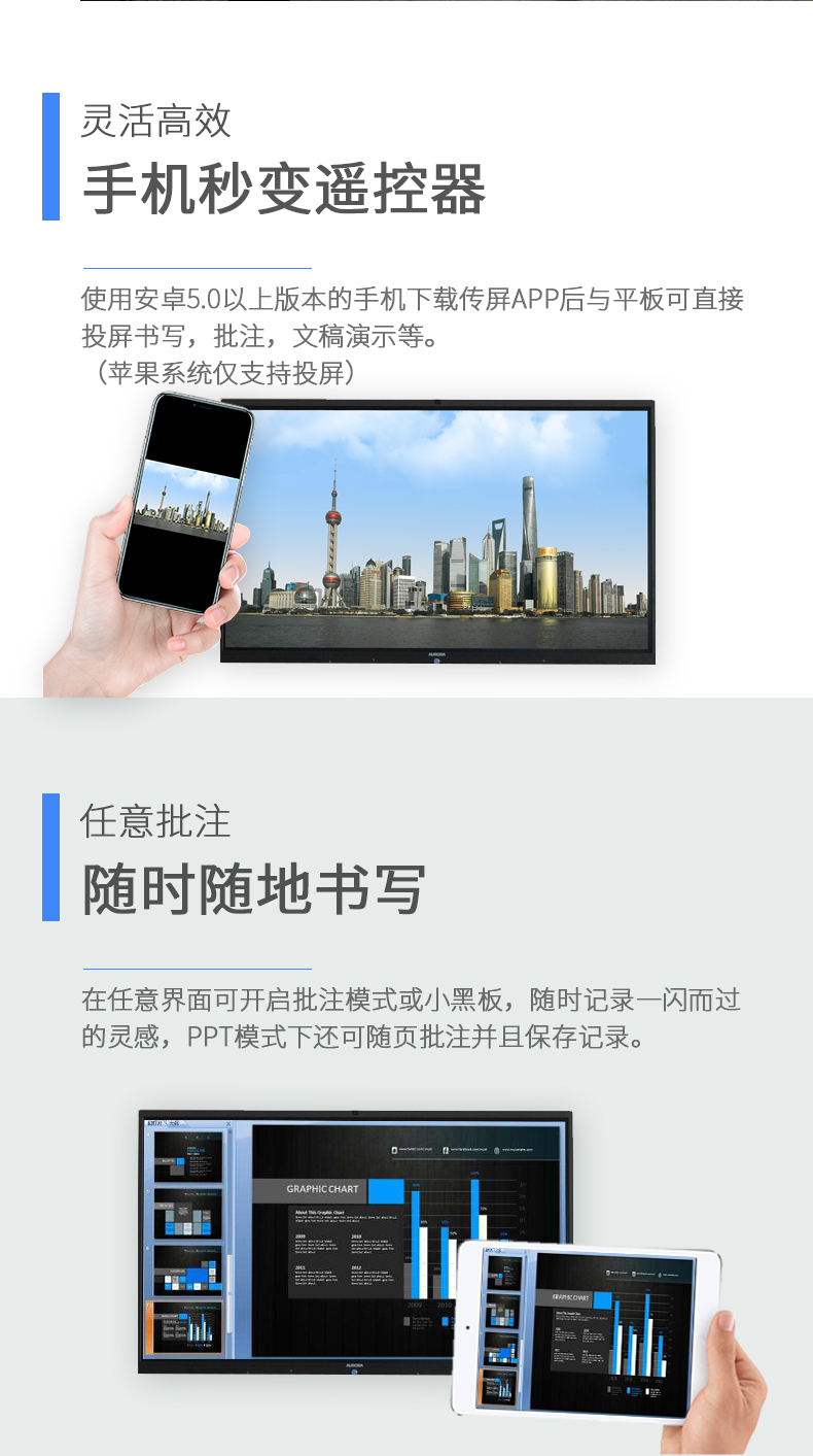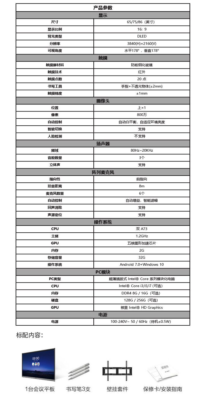 震旦AURORA 智能会议平板 商务大屏 办公电子白板无线同屏交互式平板电视 86英寸标配SD86CA 曜石黑