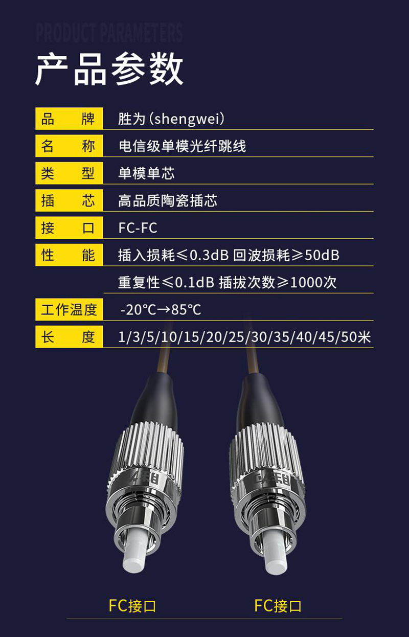 胜为 SHENGWEI FSC-2103 电信级光纤跳线 FC-FC 9/125 单模单芯光纤 50米 收发器尾纤 随机