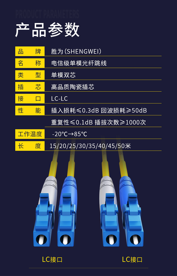 胜为 SHENGWEI FSC-1307 电信级LC-LC光纤跳线 30米/对 单模双芯尾纤 收发器/光猫连接线 随机