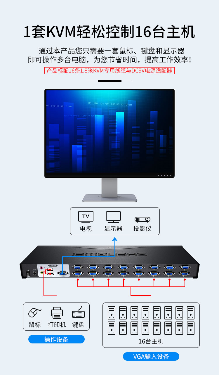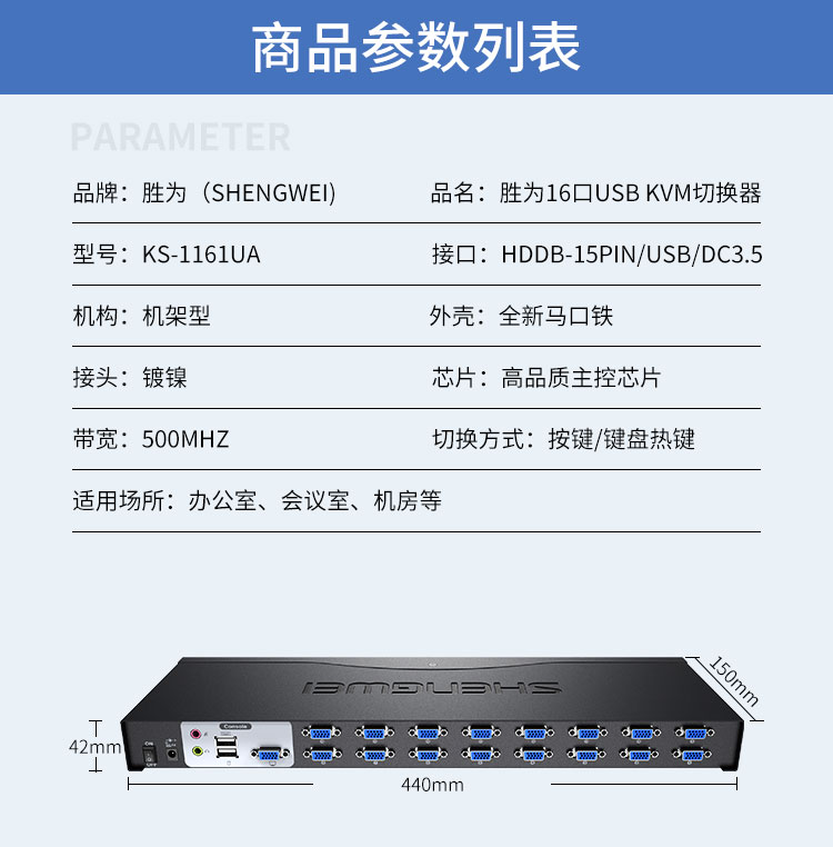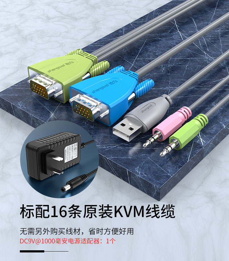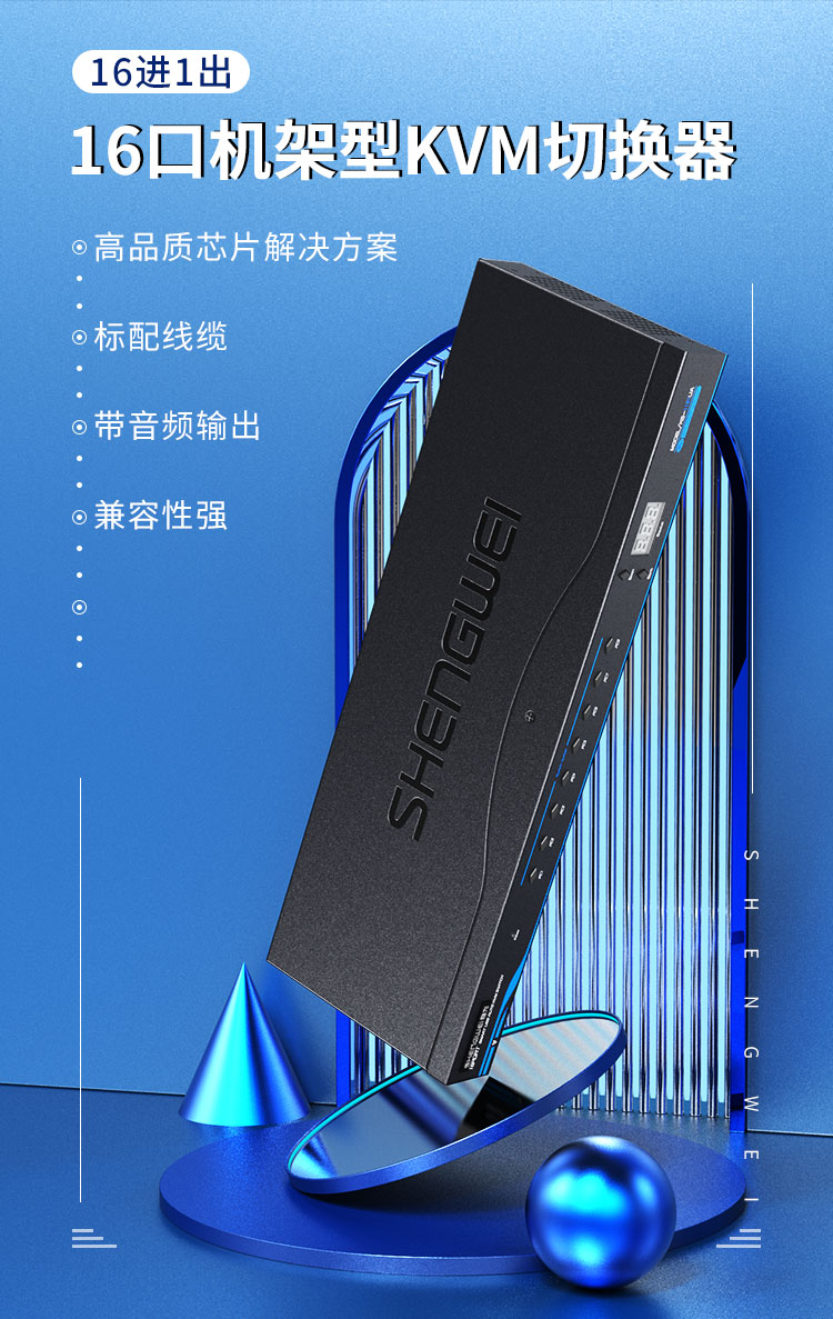 胜为 SHENGWEI KS-1161UA KVM自动切换器USB键盘鼠标16口配线机架型带音频十六进一出VGA多电脑切换共享器 随机