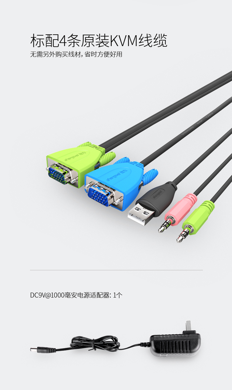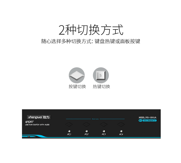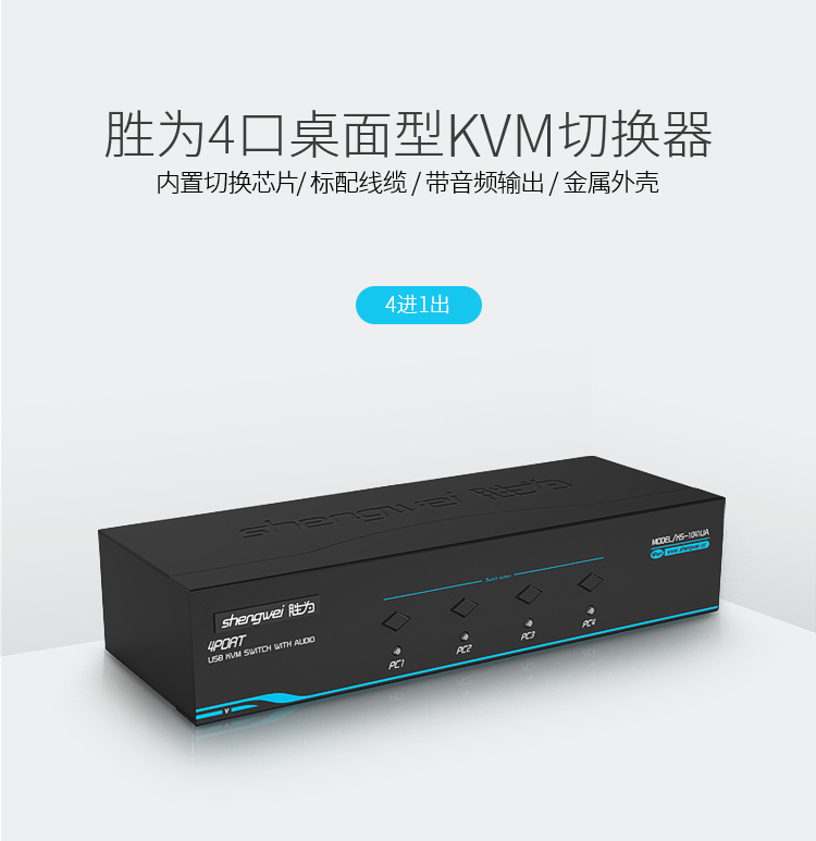 胜为 SHENGWEI KS-1041UA KVM自动切换器 USB键盘鼠标 4口配线带音频 四进一出 随机