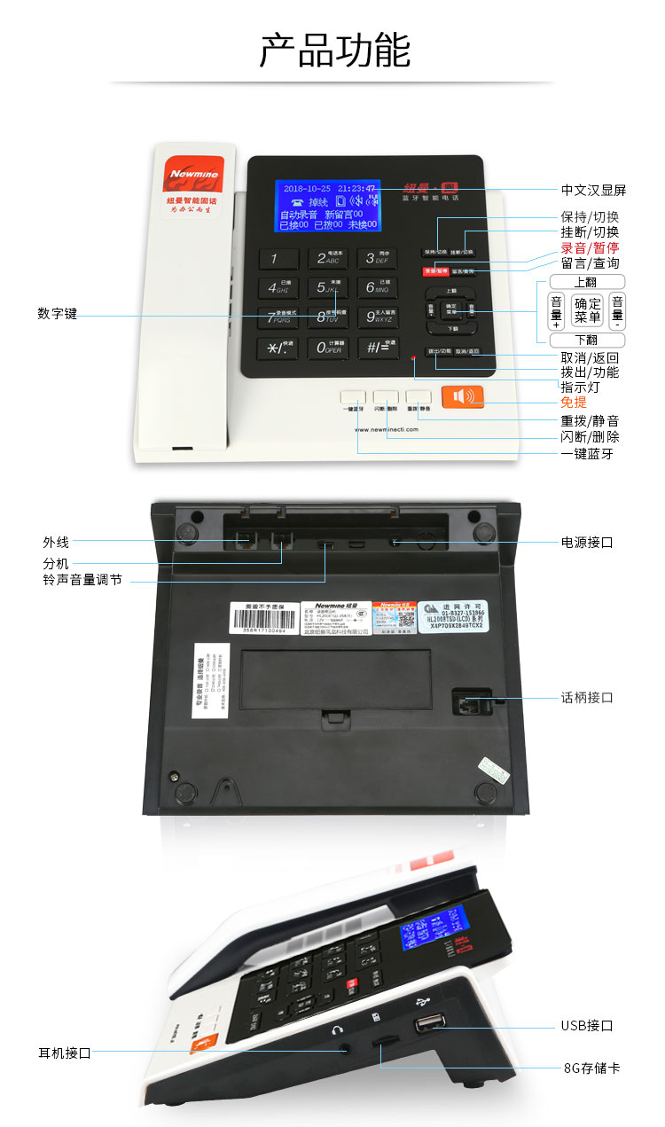 纽曼 NEWMINE 368(R) 单机 电话机 白色
