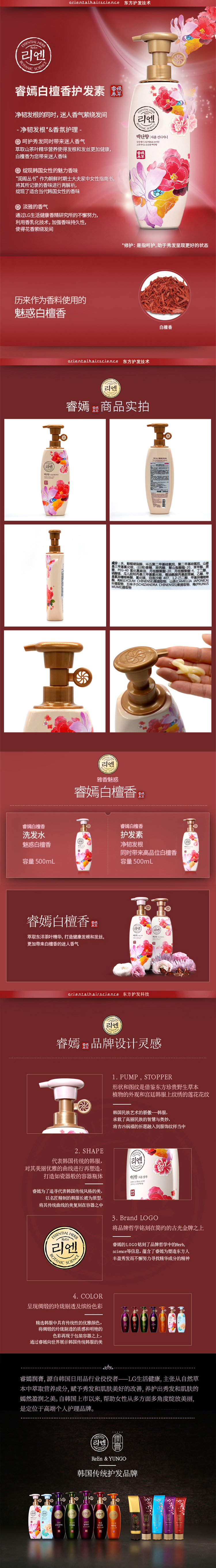 睿嫣清雅白檀香护发素500ML/瓶 混色