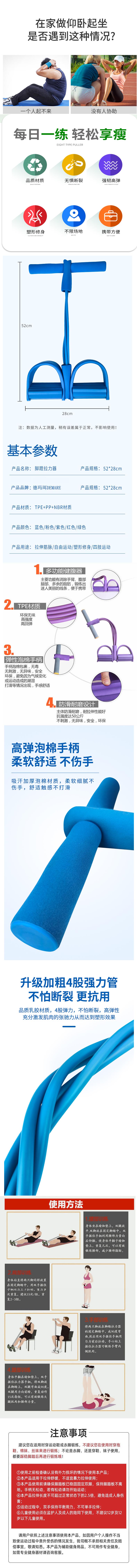 德玛珥DEMARE 脚蹬拉力器 加粗4股强力管DMR-JSQ01 随机