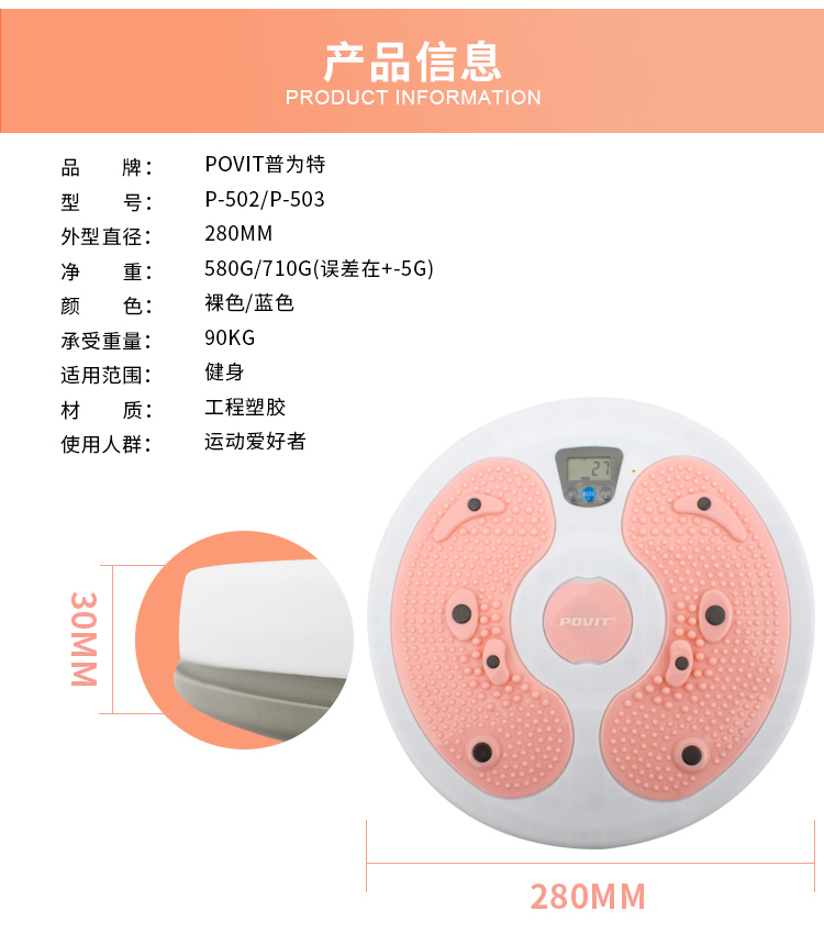 普为特 POVIT 卡路里电子扭腰盘P-502(单位:个) 粉色