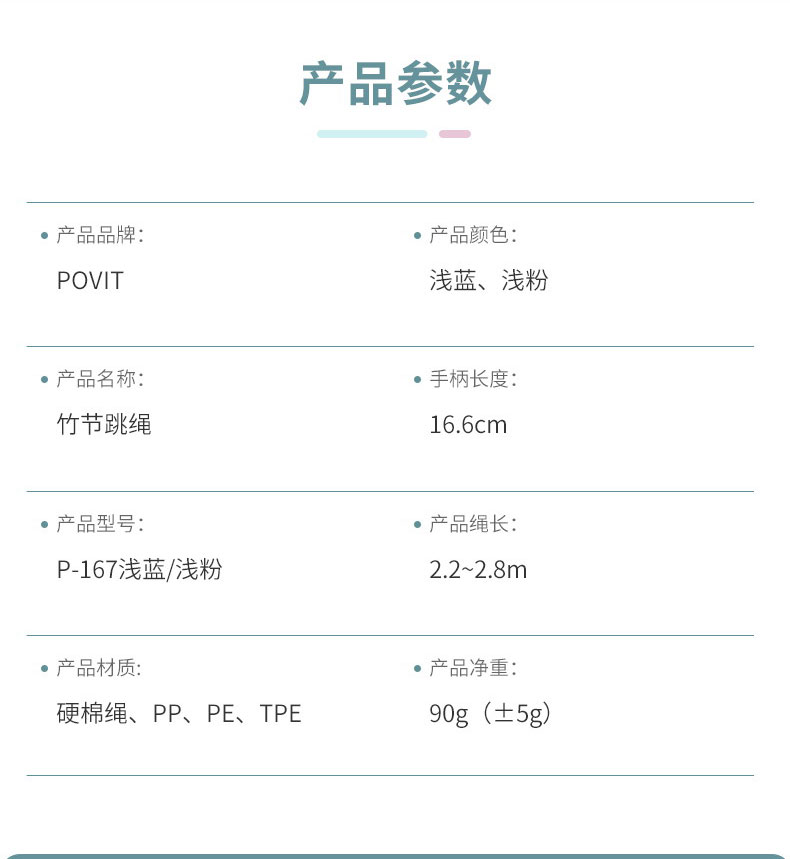 普为特POVIT包胶竹节跳绳P-215(单位:条) 天蓝色