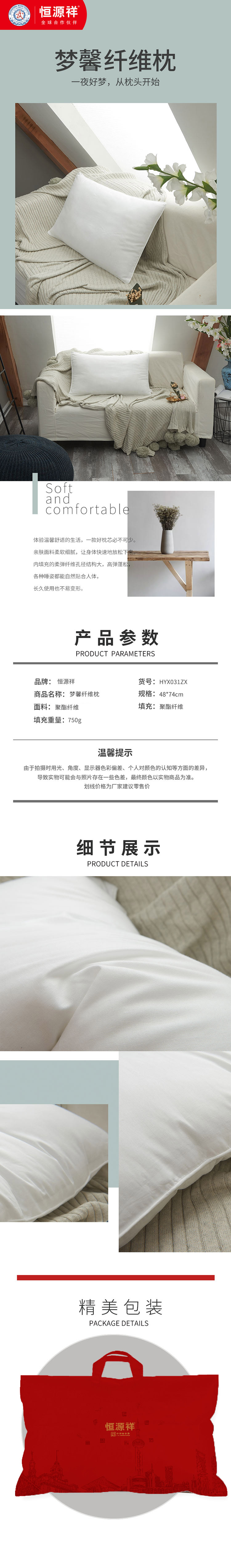 恒源祥 HYX031ZX梦馨纤维枕 48*74cm 单只装 本白色