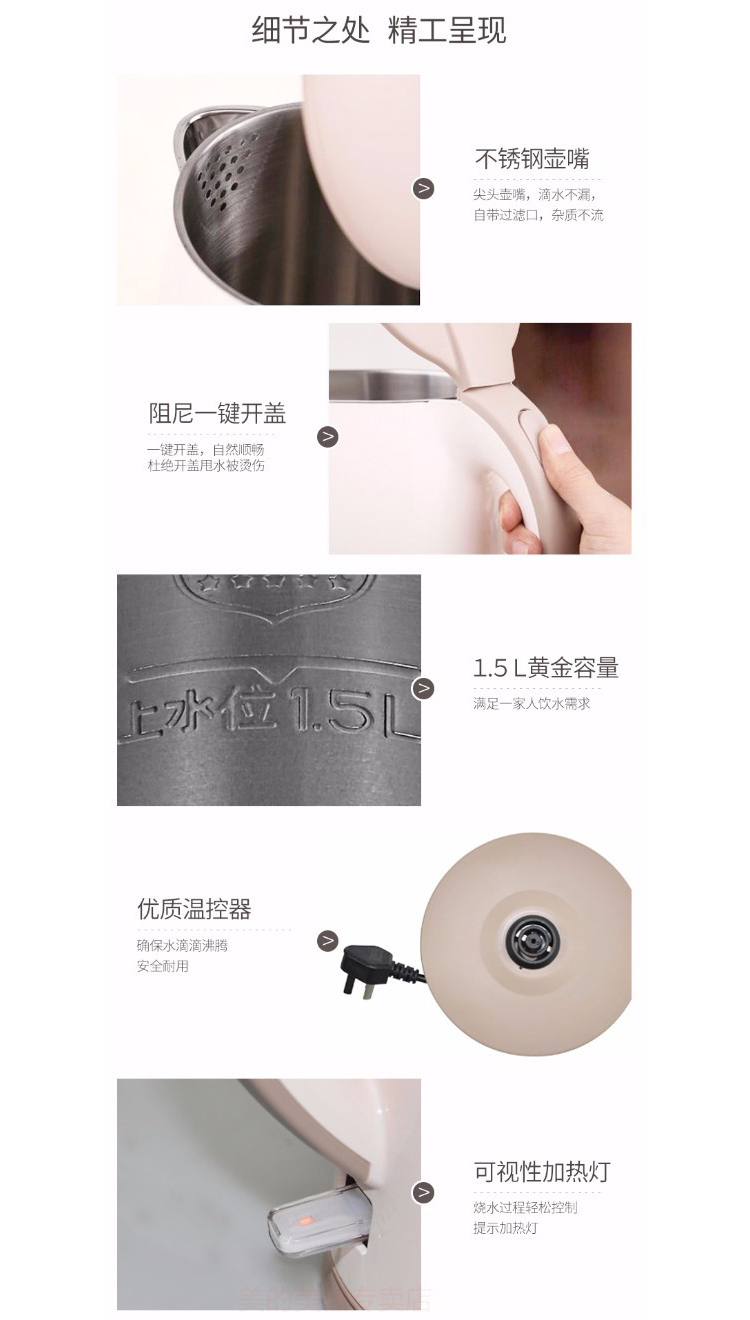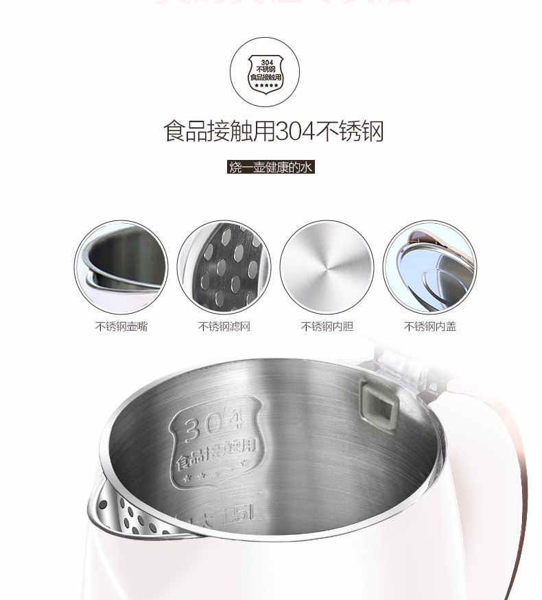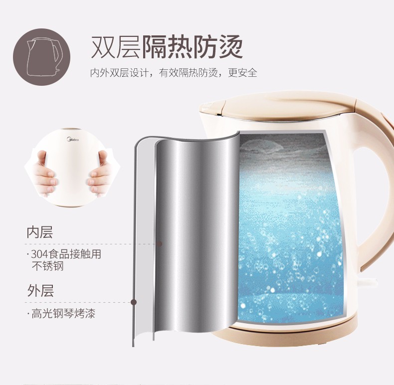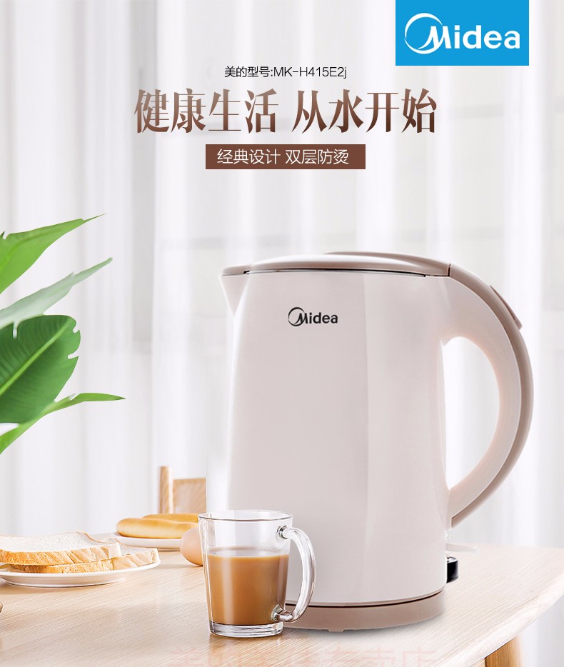 美的(Midea)电水壶烧水壶 1.5L容量 H415E2j(单位:台) 粉色