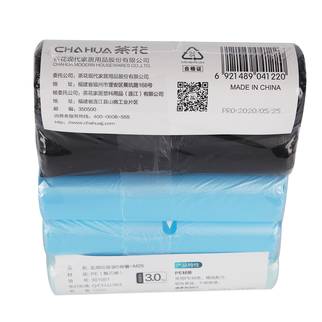 茶花(CHAHUA)实用垃圾袋5卷装-M25 301001 (单位:包)混色