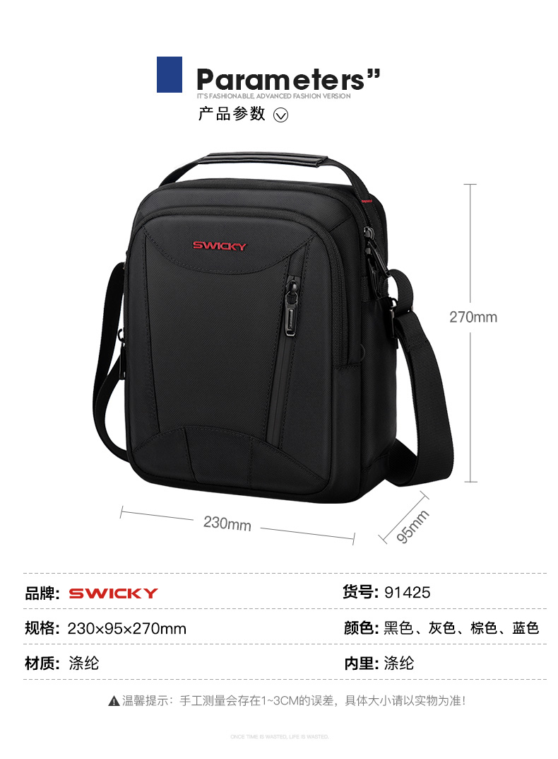 SWICKY 商务休闲 单肩斜挎包91425 单位:个 黑色