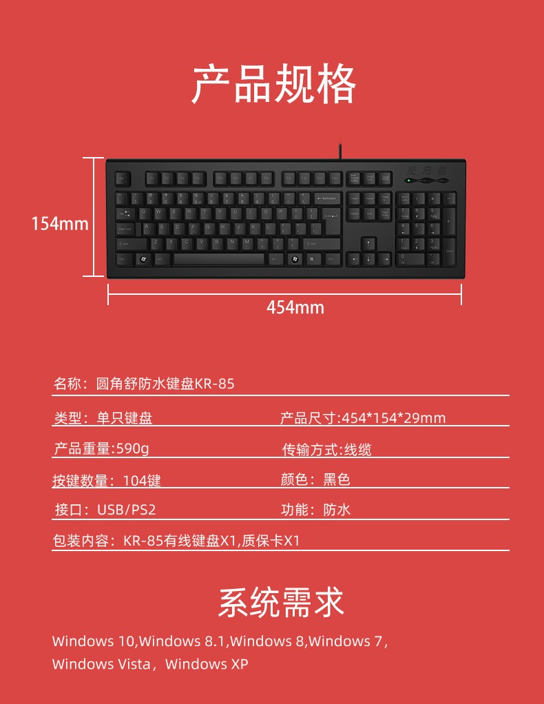 双飞燕(A4TECH)KR-85PS2 有线办公键盘 (单位:只) PS2接口