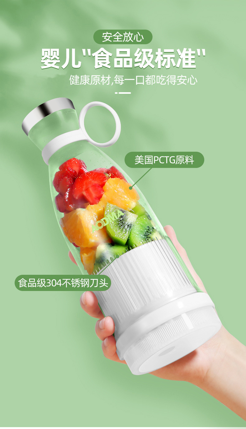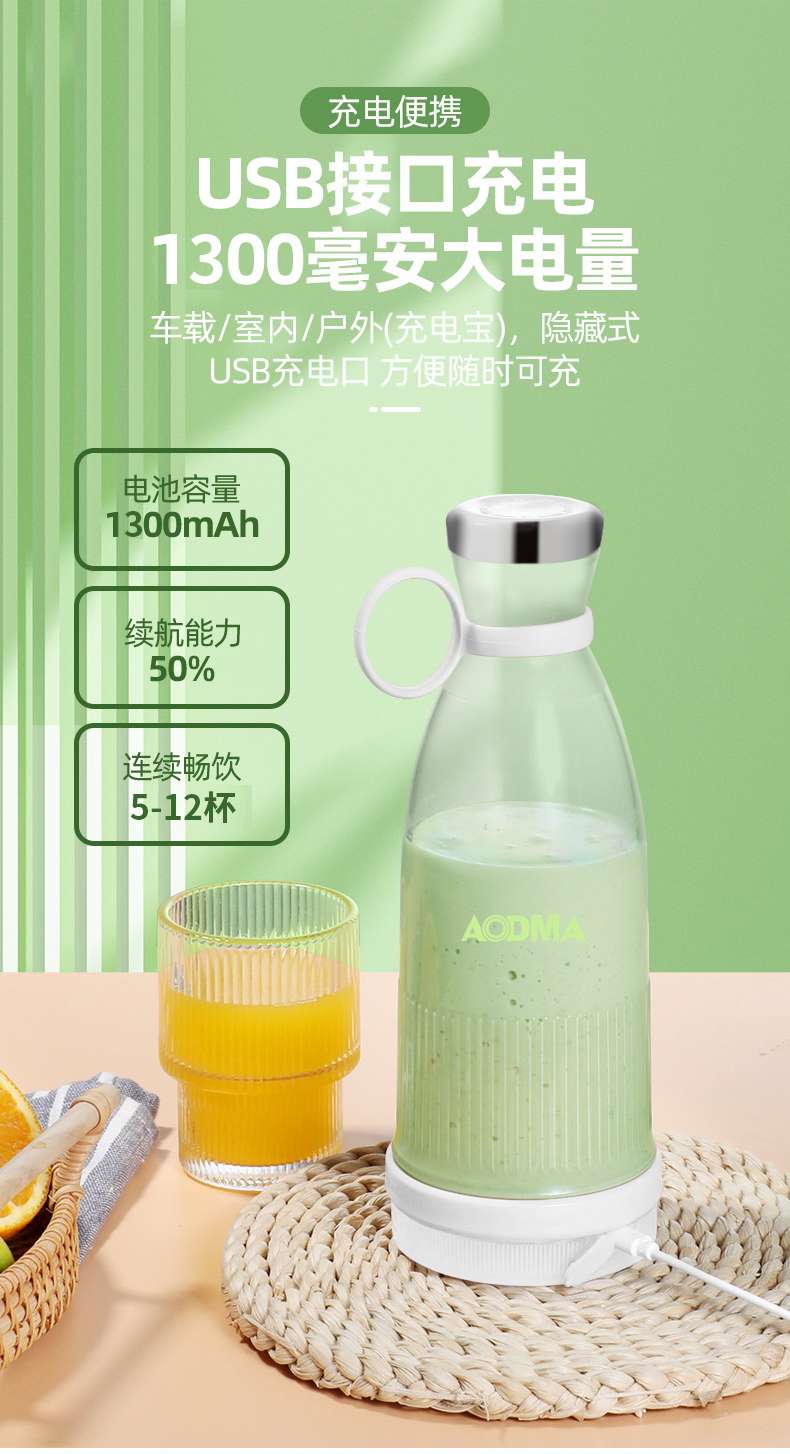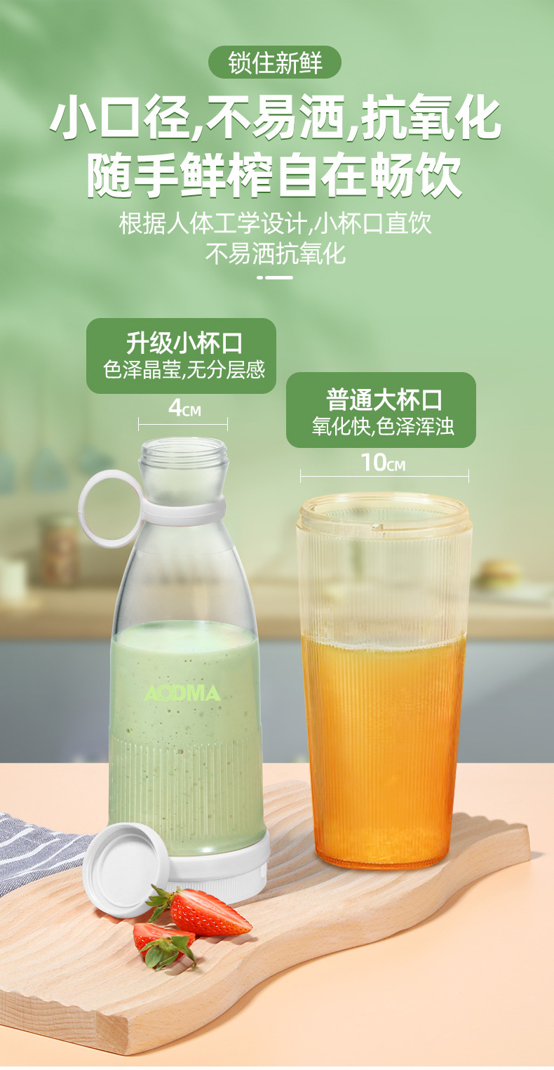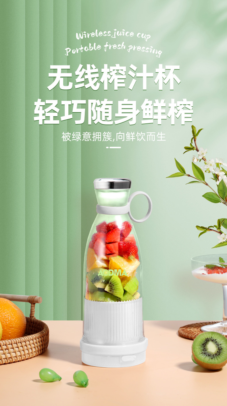澳得迈(AODMA) 便携式果汁杯小型榨汁机充电式果汁机 PJ-102 380ml容量 白色(单位:台)