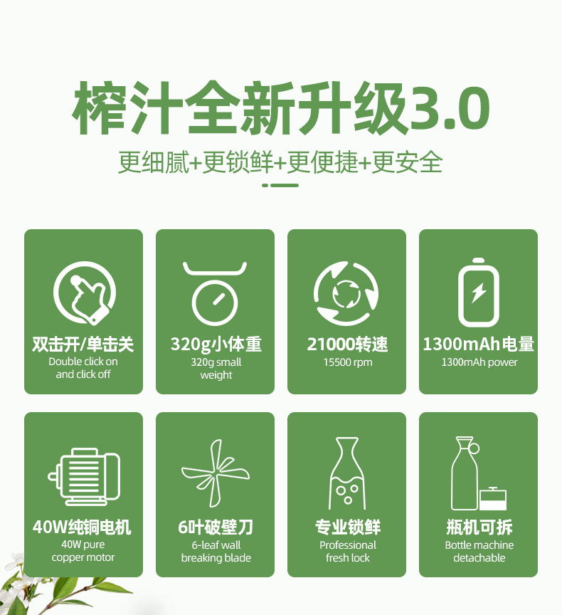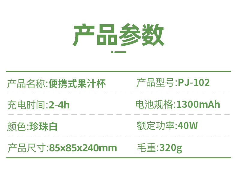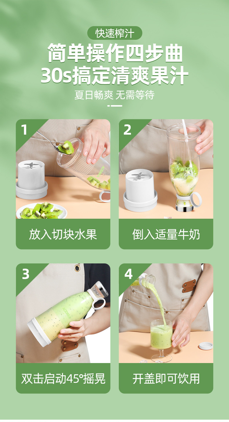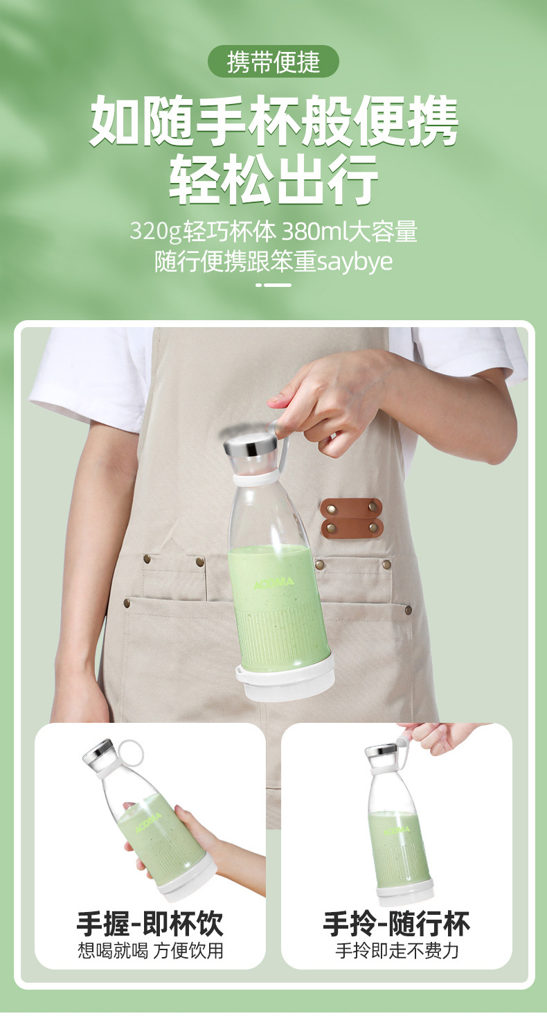 澳得迈(AODMA) 便携式果汁杯小型榨汁机充电式果汁机 PJ-102 380ml容量 白色(单位:台)