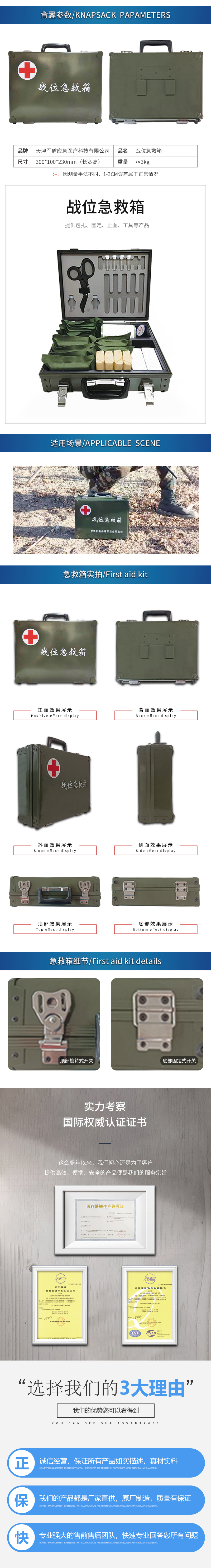 天津军盾应急医疗 战位急救箱【不含药品】 止血包扎固定分隔设计取用方便 户外救生急救应急箱 军绿色