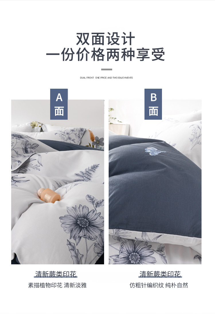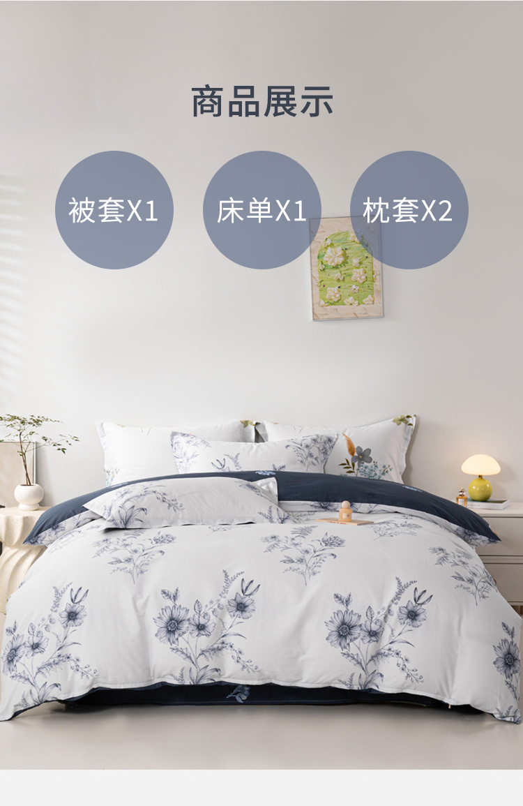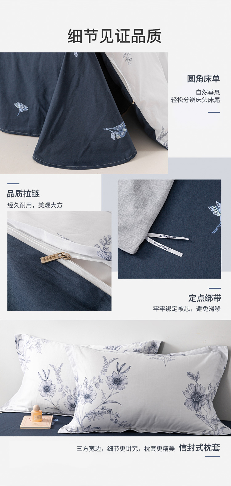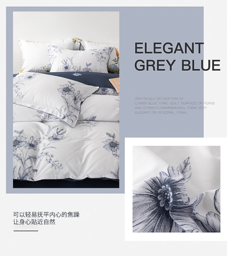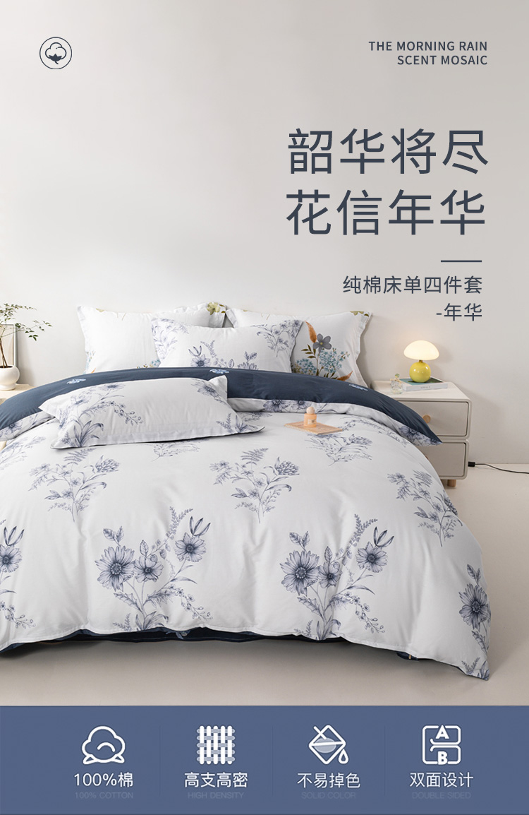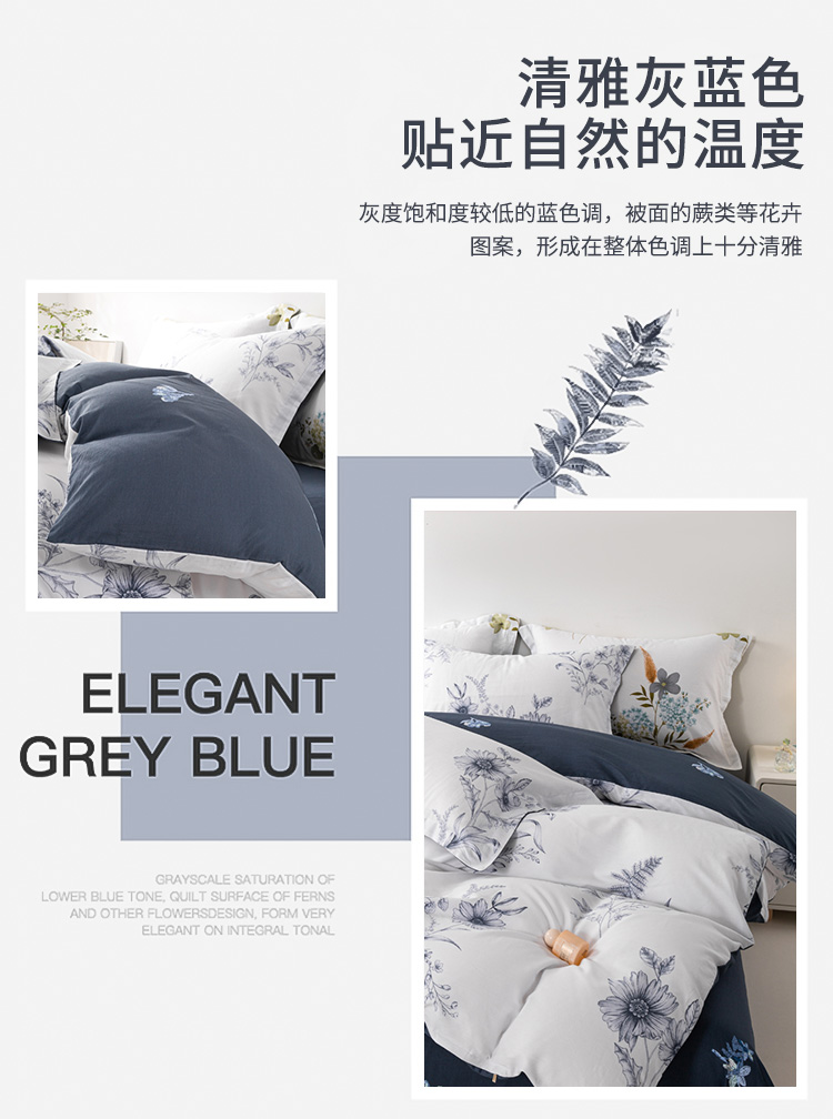 晚安-40支纯棉床单四件套-年华 灰蓝色 200*230cm