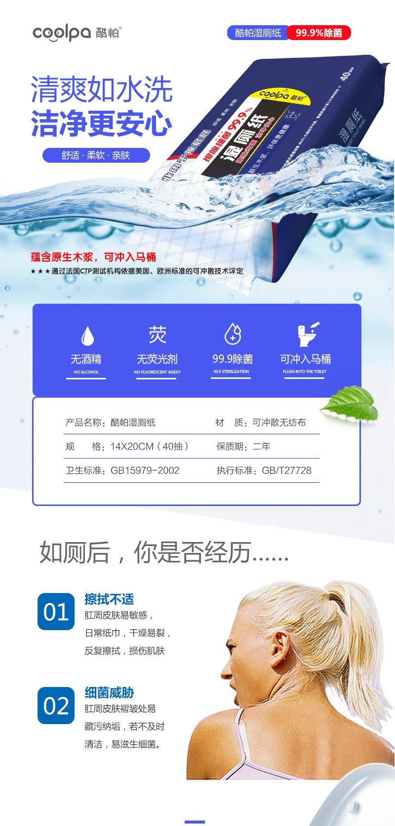 酷帕40片除菌洁厕湿巾*5包 蓝色
