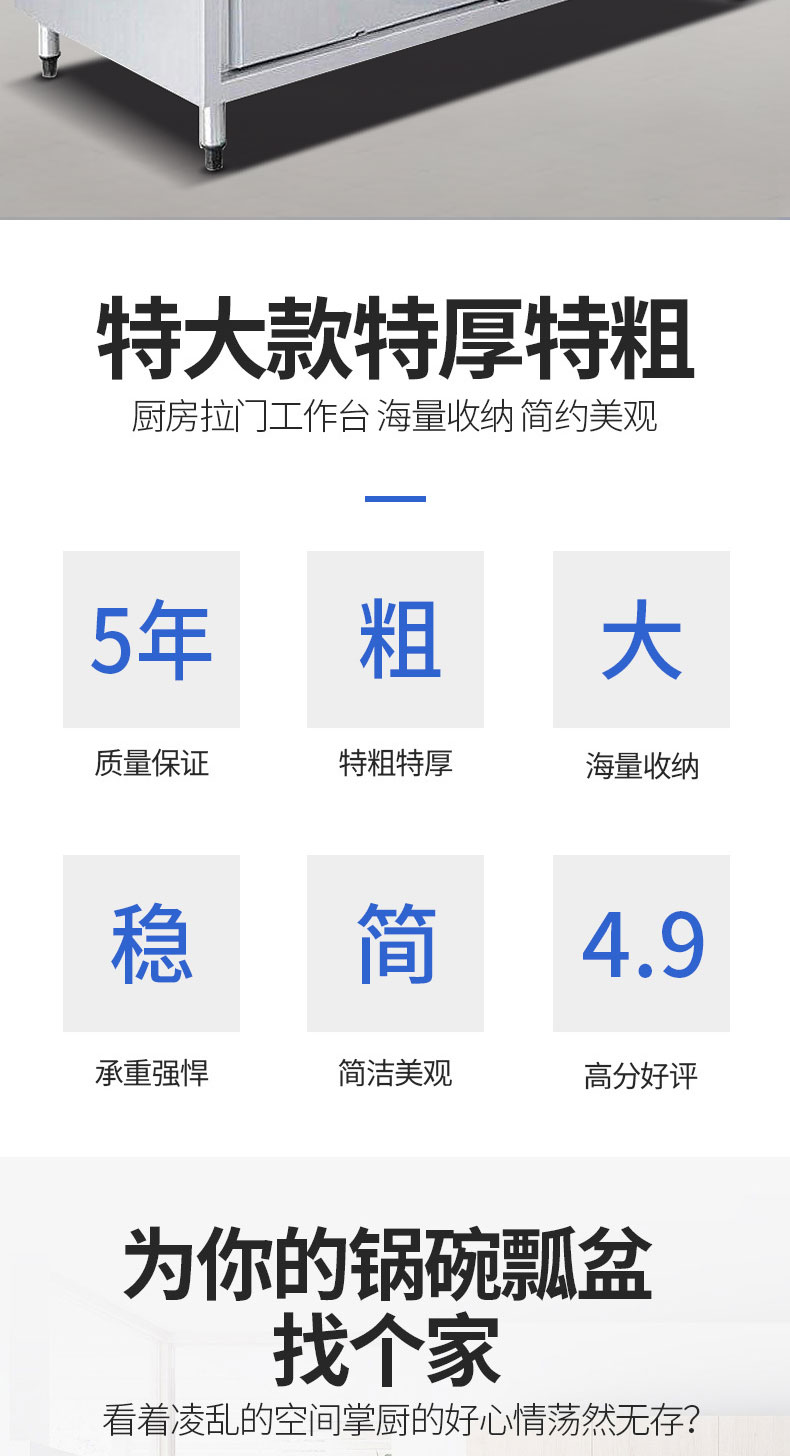 乐创(lecon) 商用双拉门工作台 厨房操作台面不锈钢储物柜 201型1.8*0.6米LC-J-BG01 不锈钢色