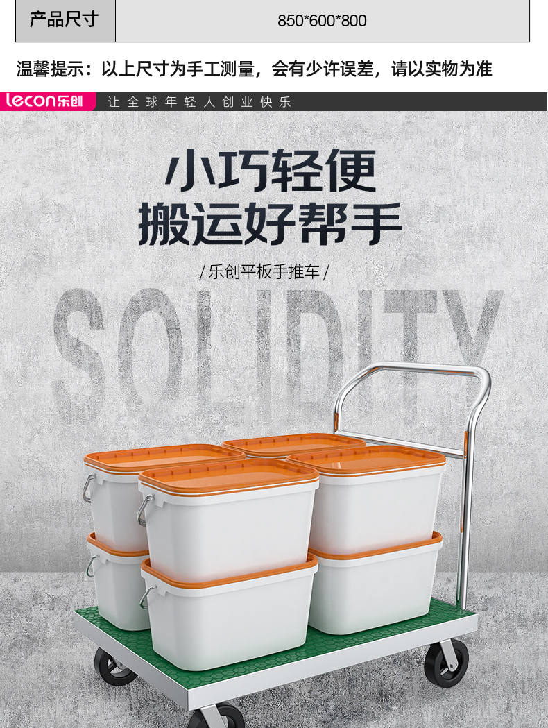 乐创(lecon)商用平板手推车 平板小拖车拉货车 LC-J-JBC60 军绿色