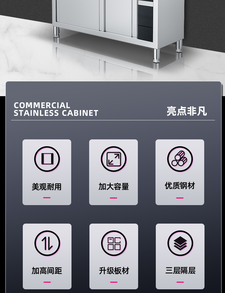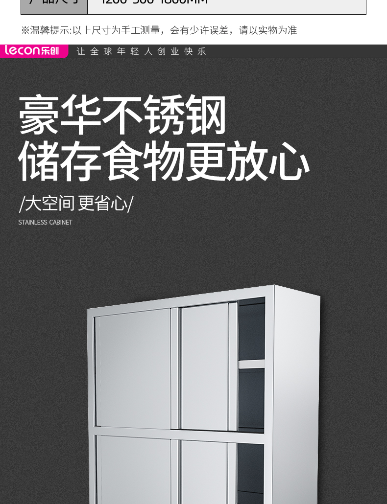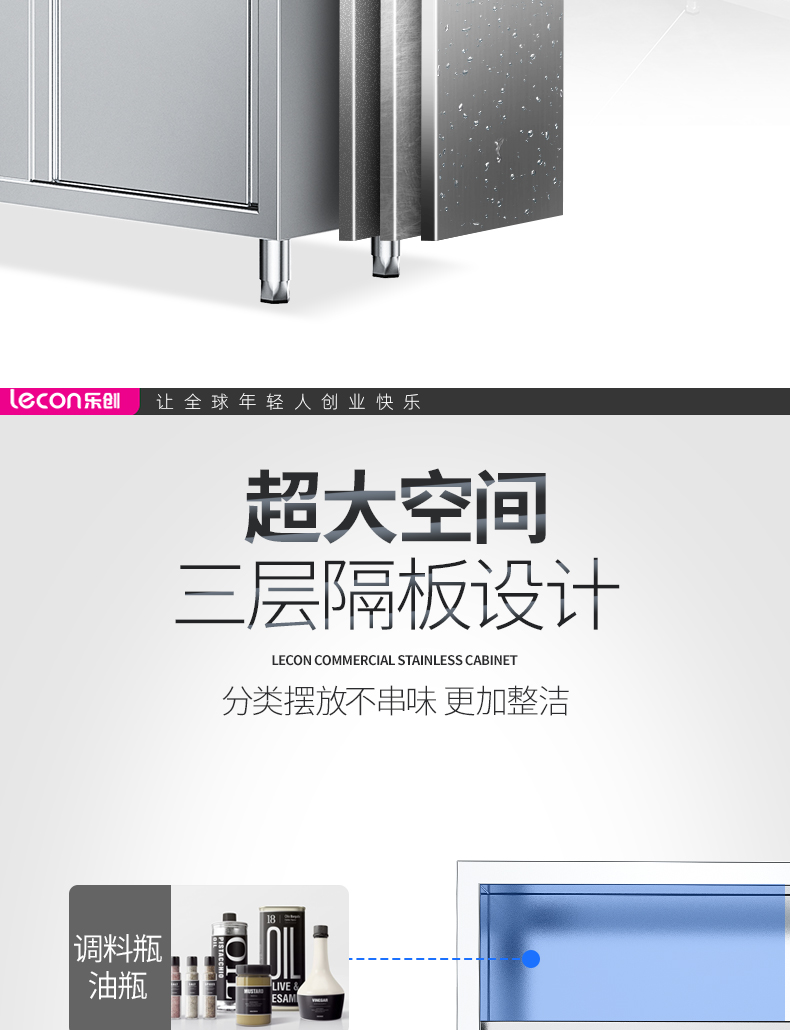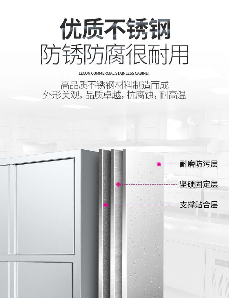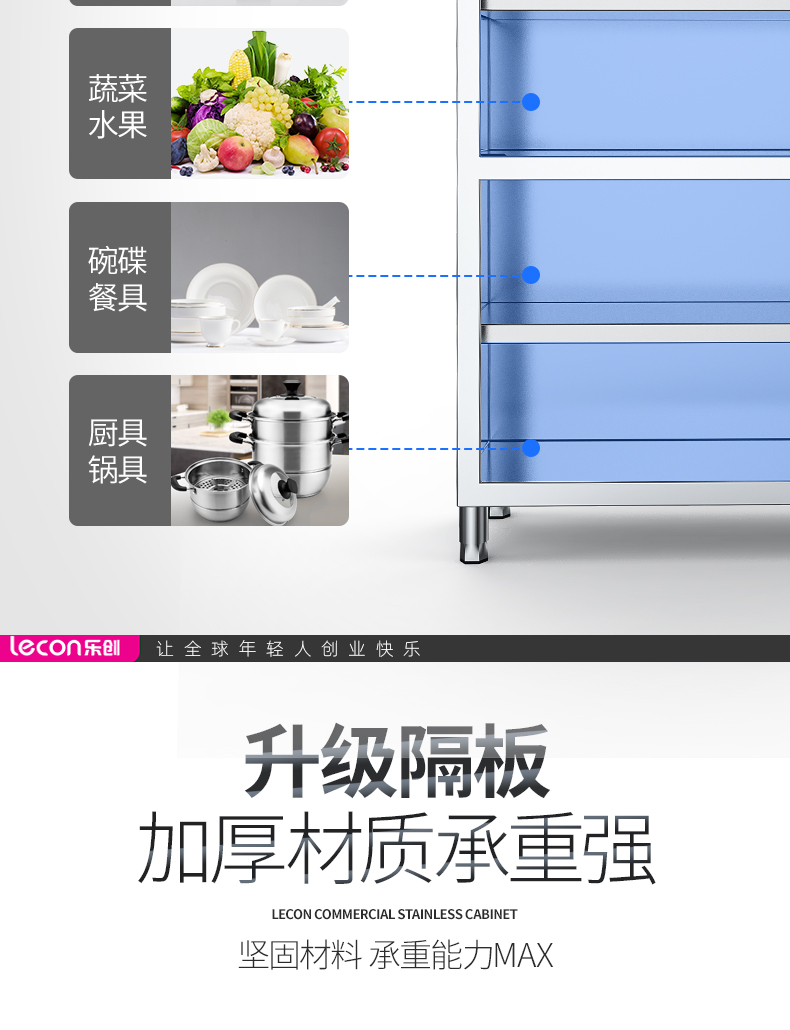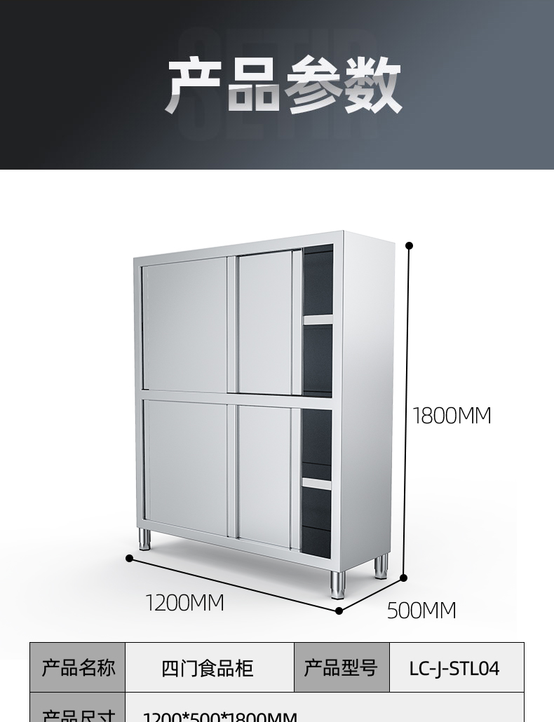 乐创(lecon)商用四门碗柜 不锈钢食品橱保洁柜储物柜 LC-J-STL04 不锈钢色