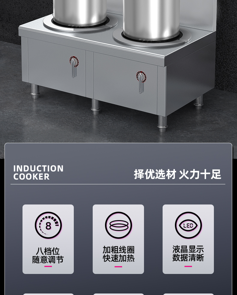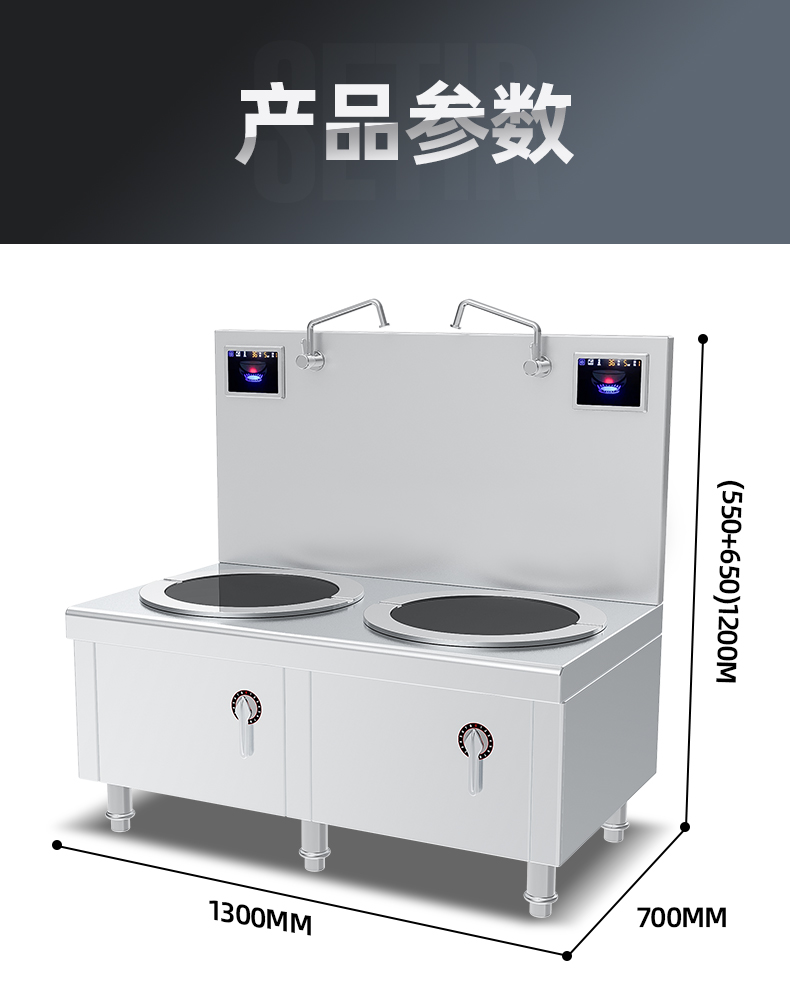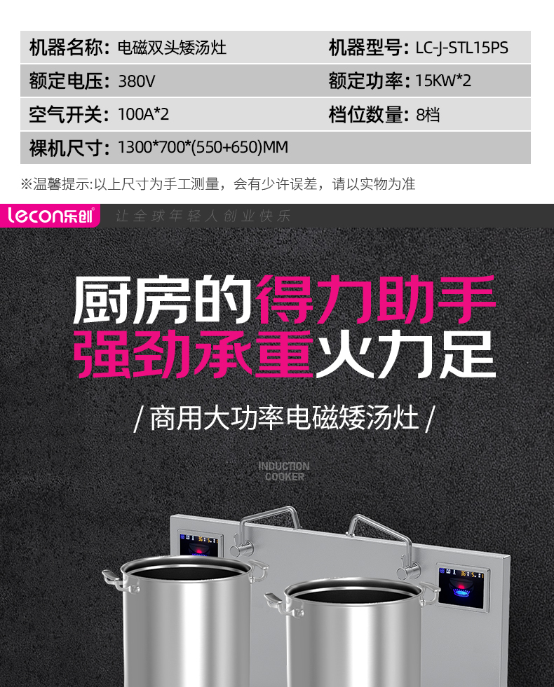 乐创( lecon) 商用双头矮汤炉 学校食堂熬汤高背汤灶 304不锈钢工程款15KW*2大功率 LC-J-STL15PS 不锈钢色