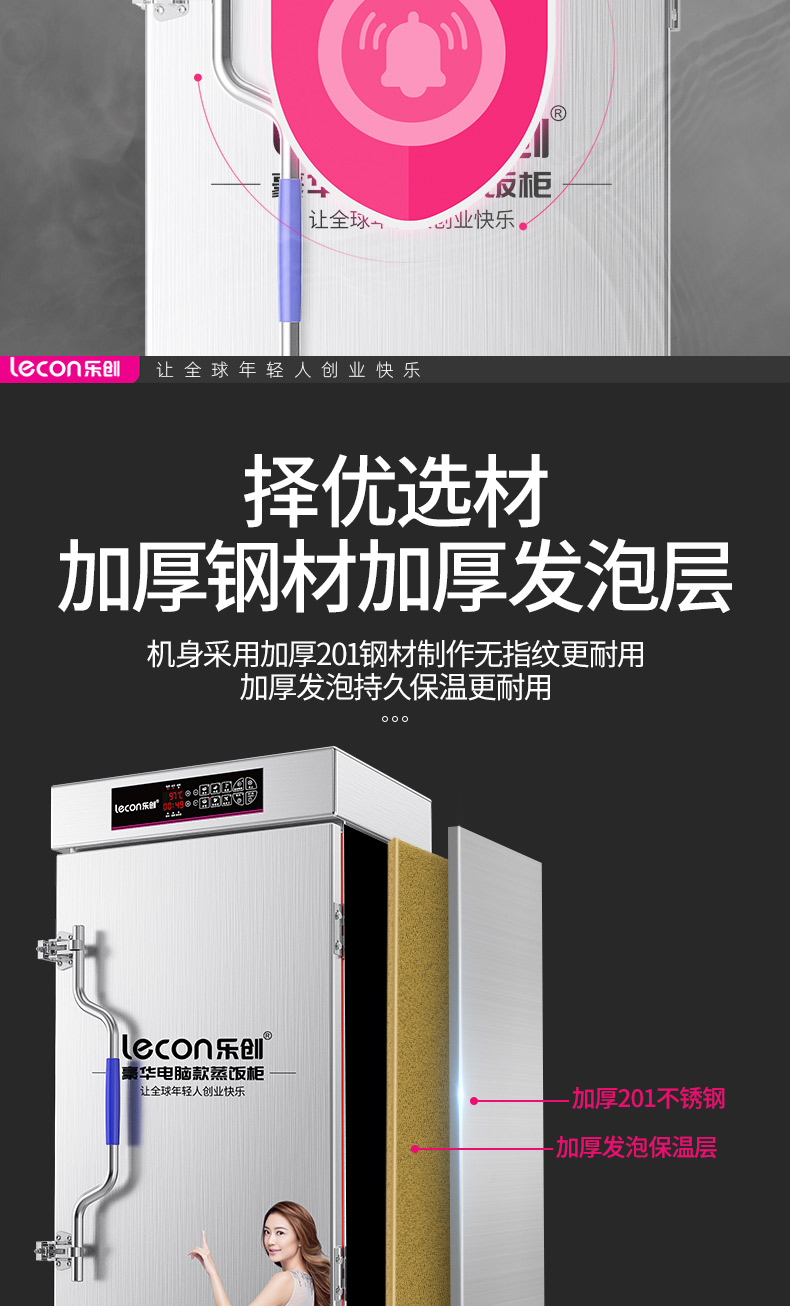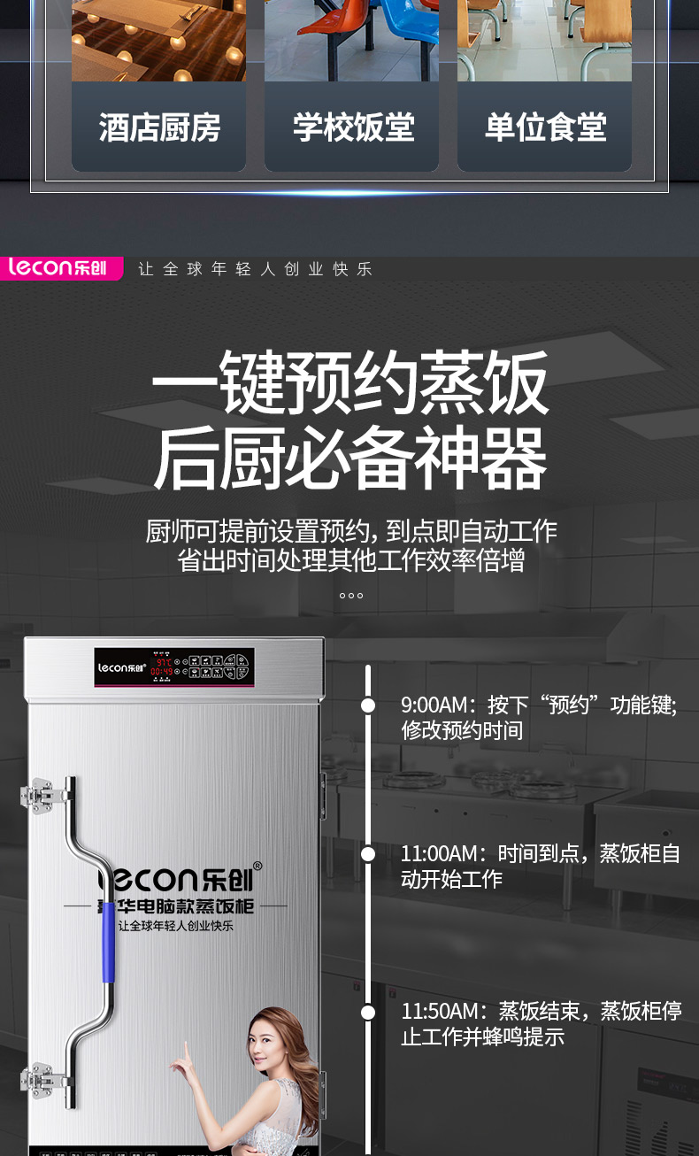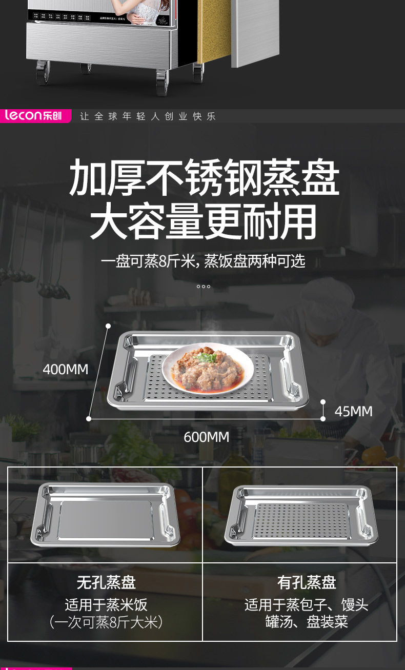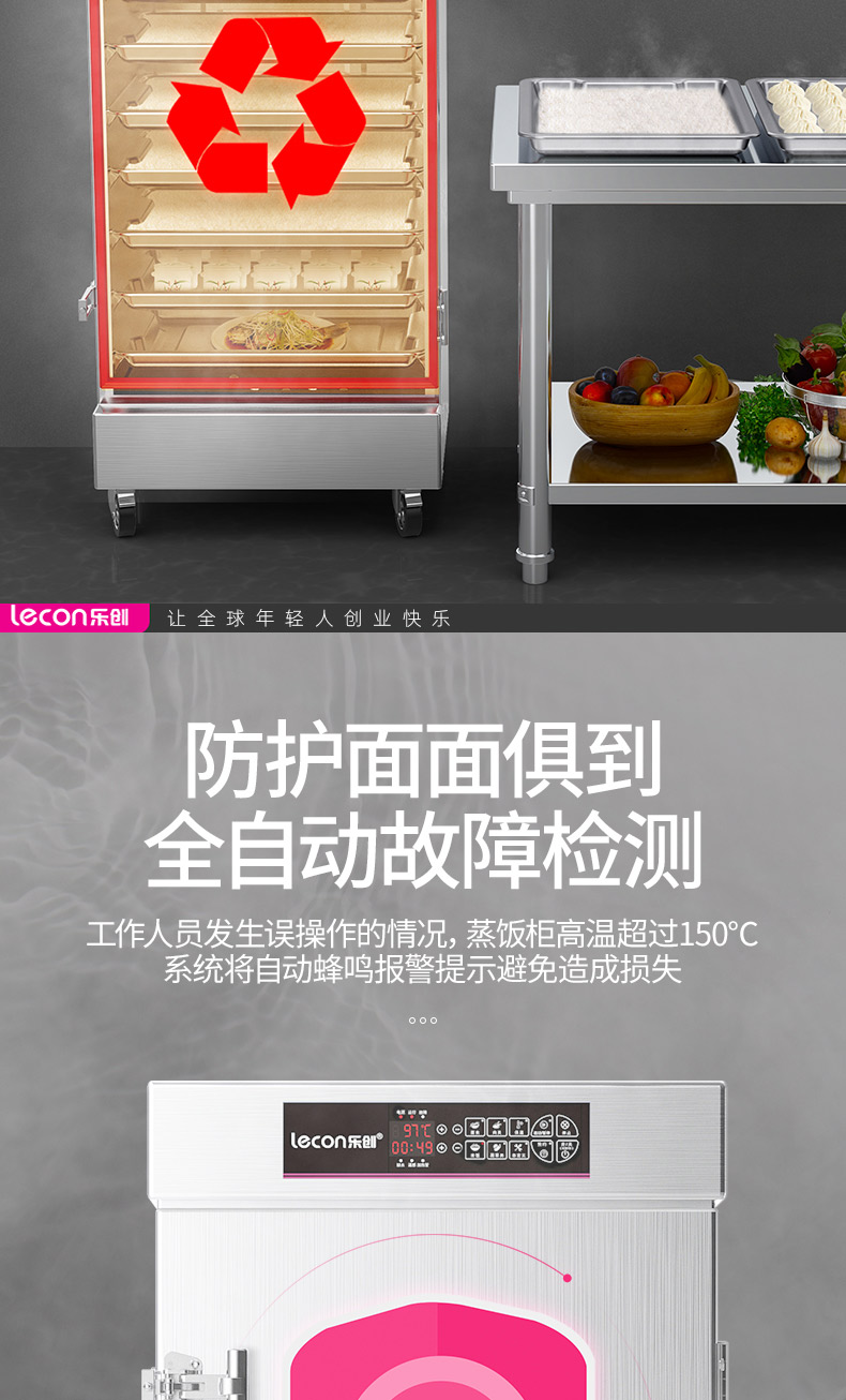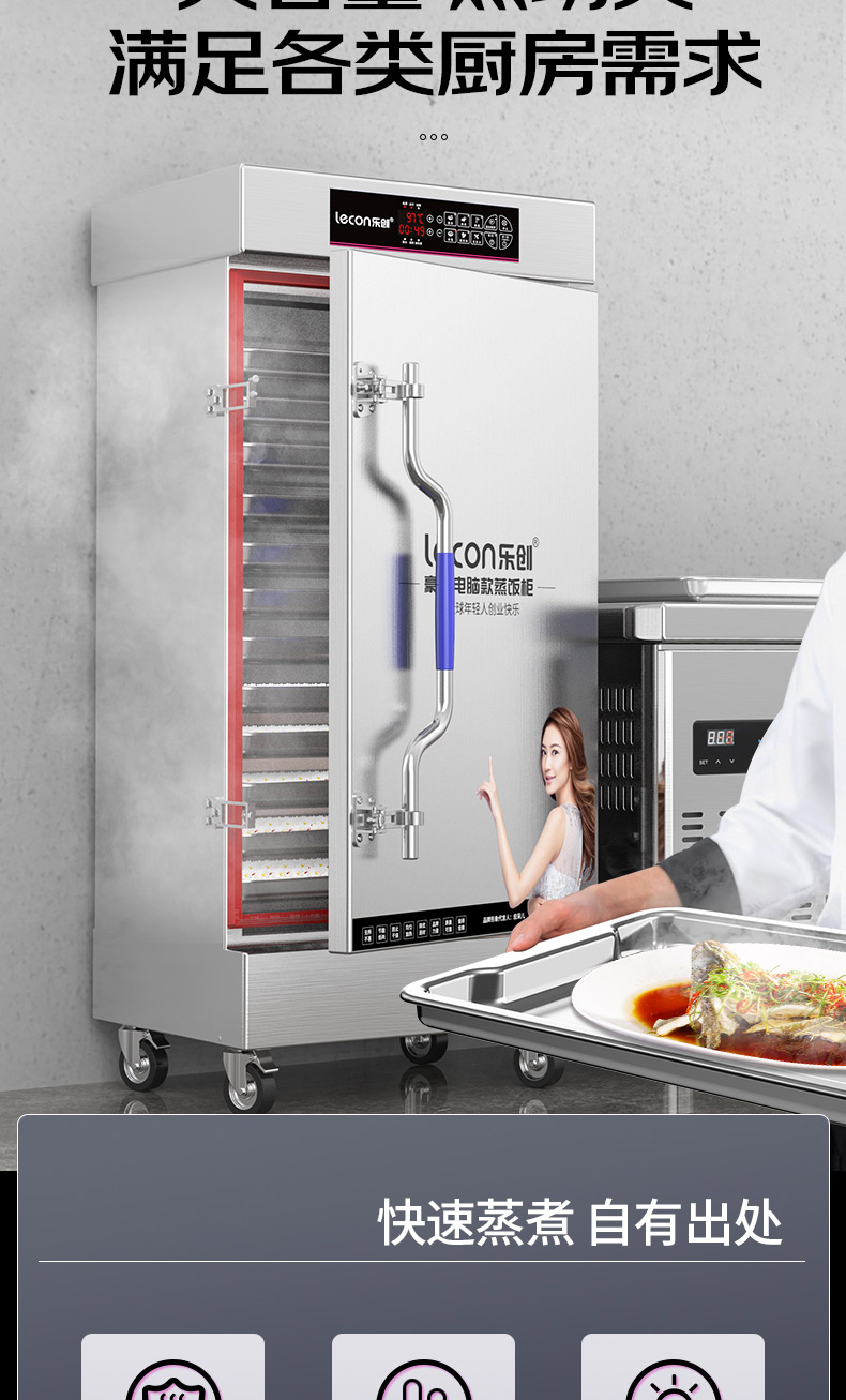 乐创(lecon)蒸饭柜蒸饭车蒸箱商用学校企业酒店食堂蒸饭箱蒸包炉馒头炉蒸饭机全自动8盘微电脑款LC-J-ZFW08 不锈钢色