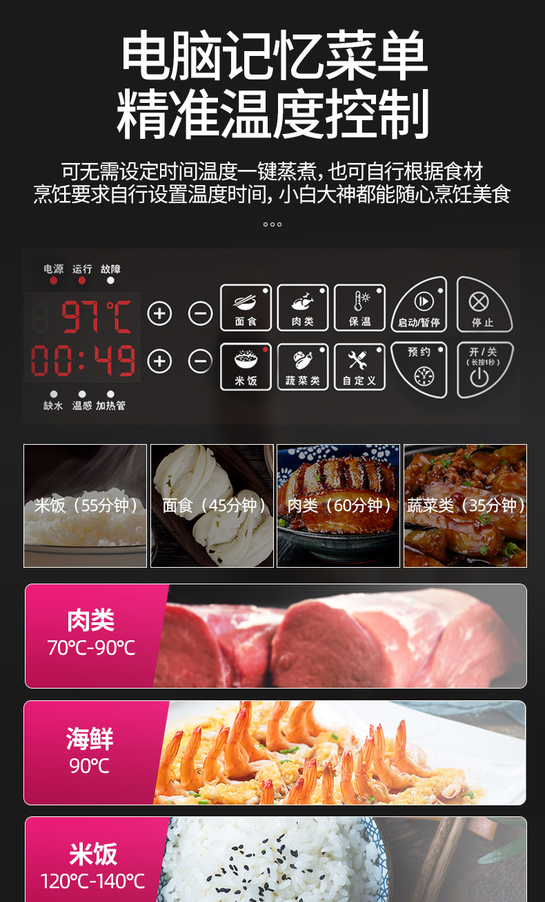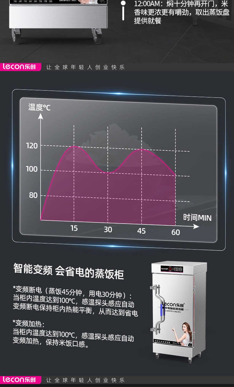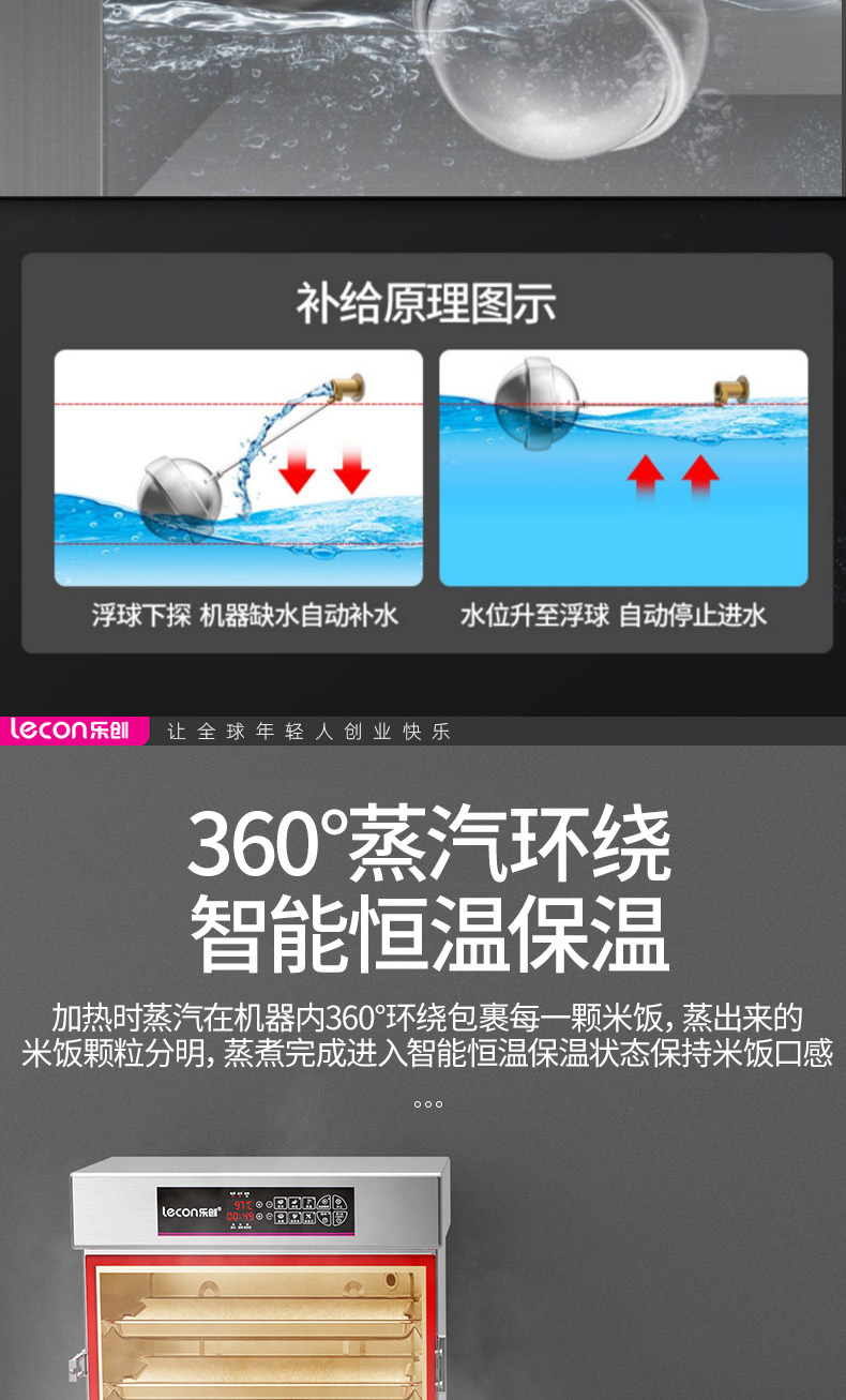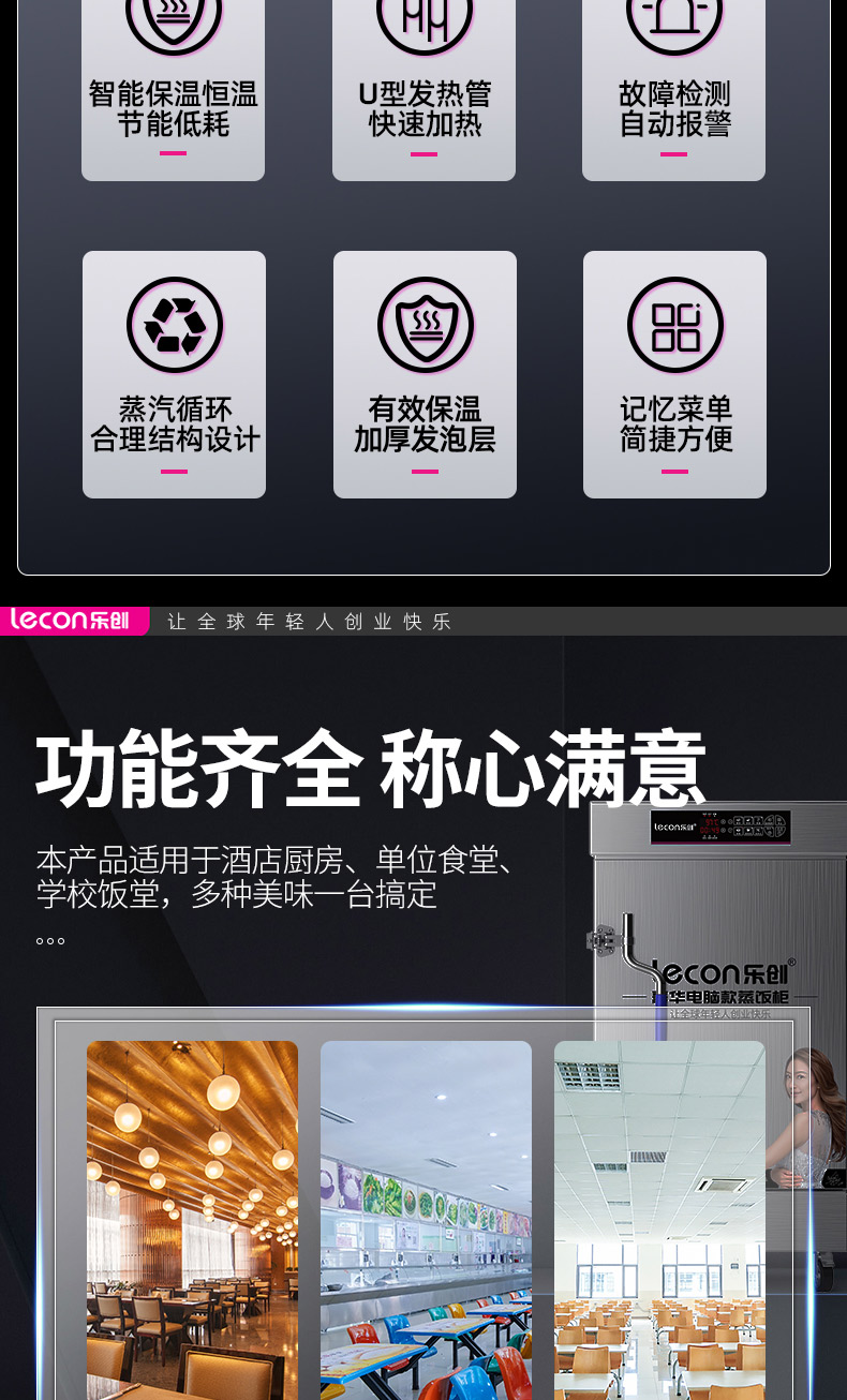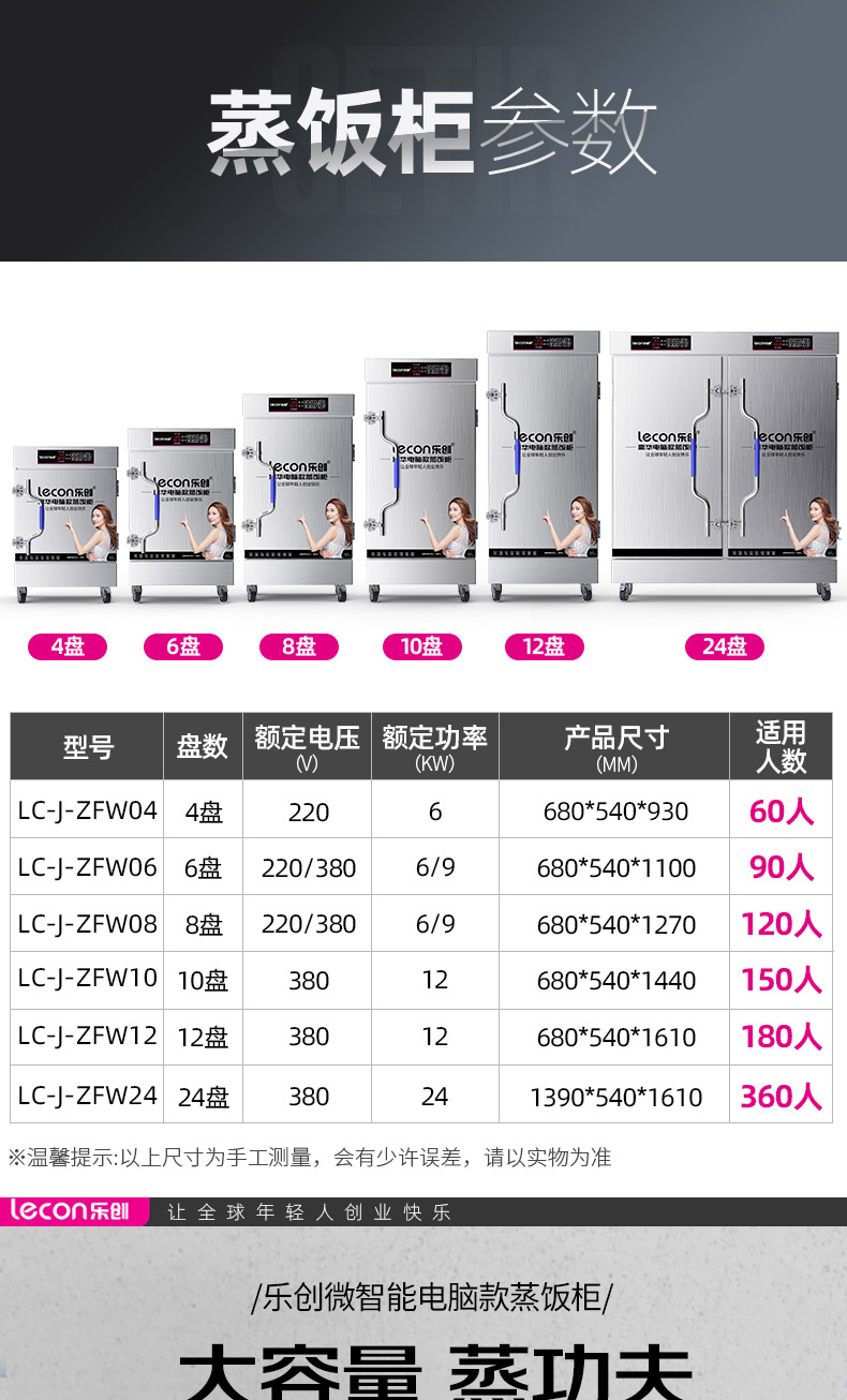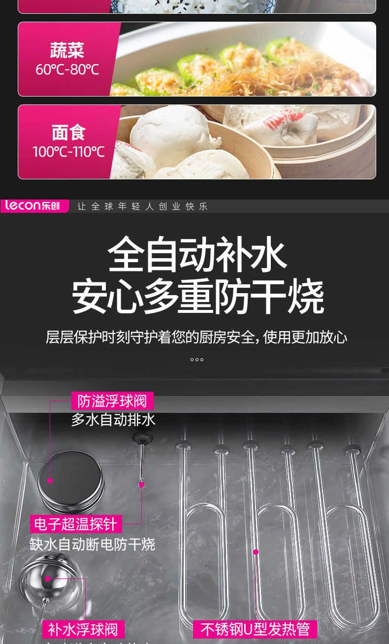 乐创(lecon)蒸饭柜蒸饭车蒸箱商用学校企业酒店食堂蒸饭箱蒸包炉馒头炉蒸饭机全自动8盘微电脑款LC-J-ZFW08 不锈钢色