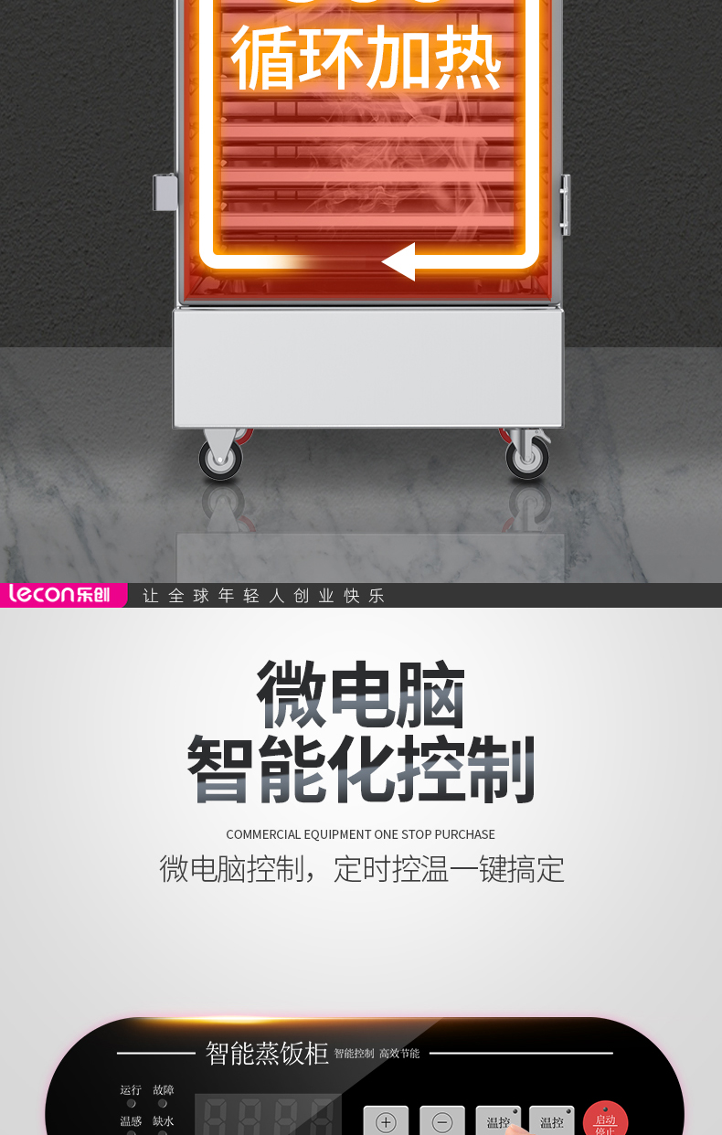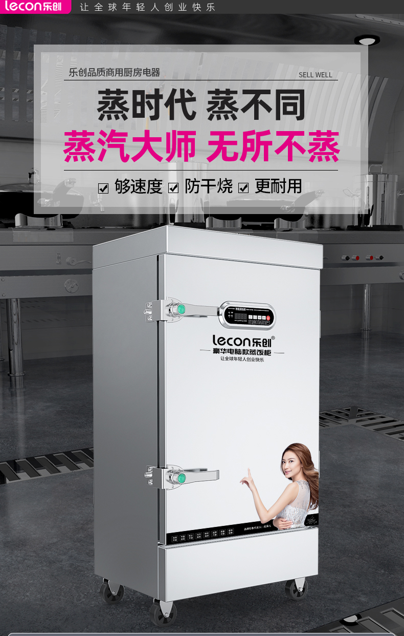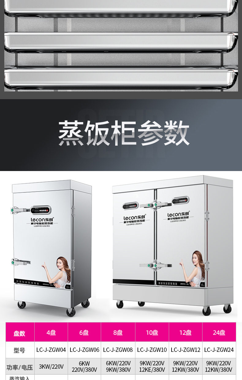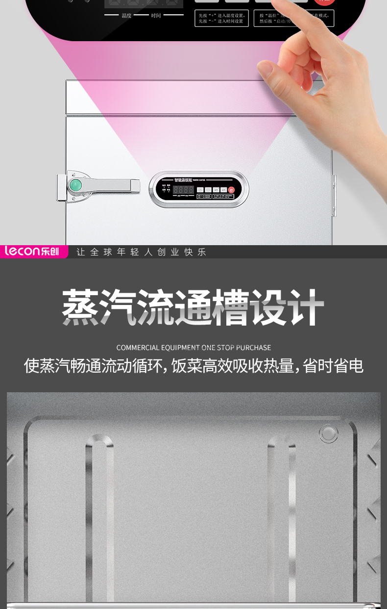 乐创(lecon)商用蒸饭柜 学校企业酒店食堂单门蒸箱蒸包炉馒头炉 8盘微电脑款 LC-J-ZGW08 不锈钢色