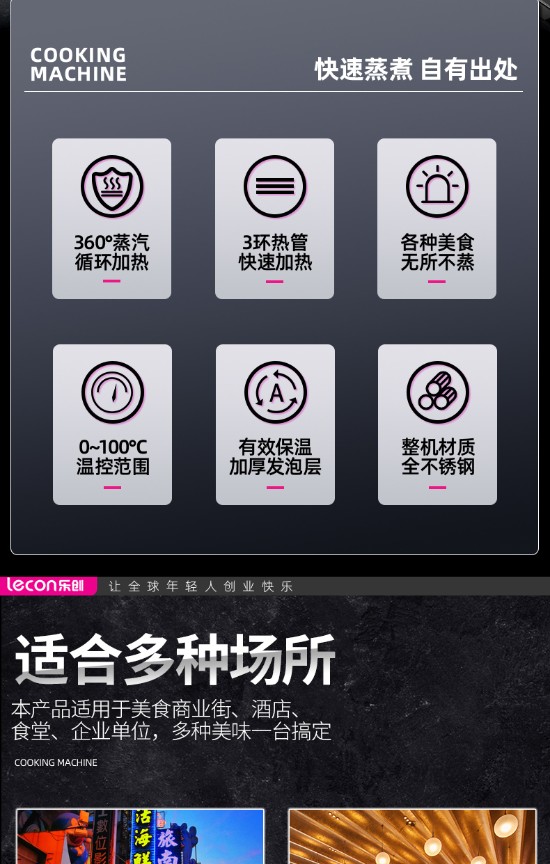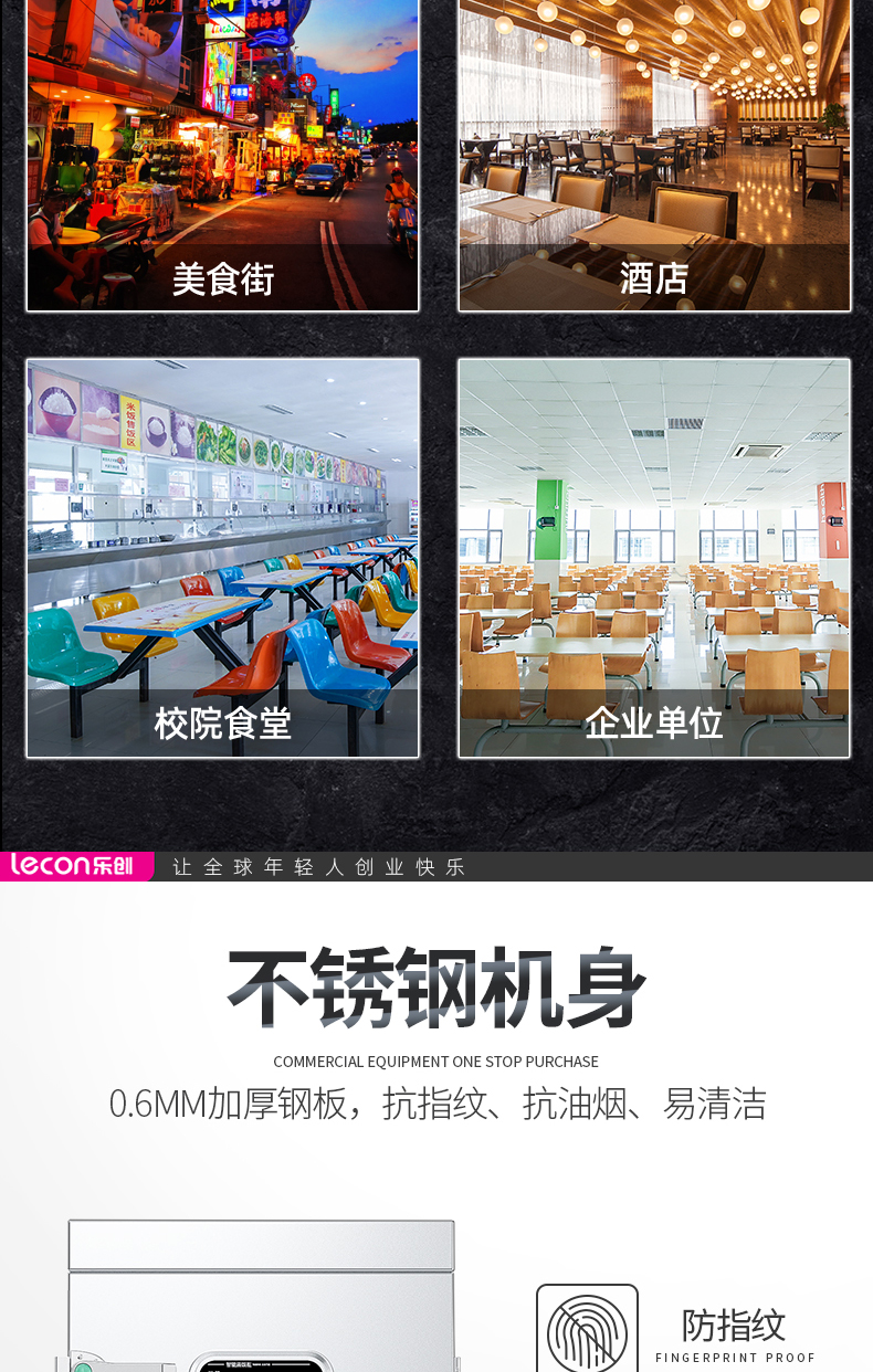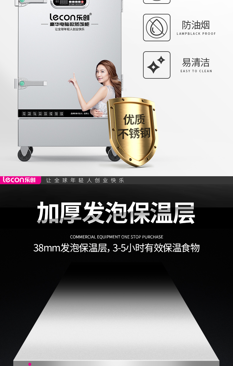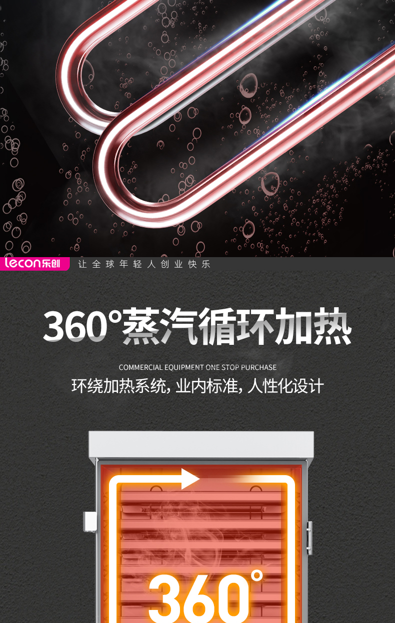 乐创(lecon)商用蒸饭柜 学校企业酒店食堂单门蒸箱蒸包炉馒头炉 8盘微电脑款 LC-J-ZGW08 不锈钢色