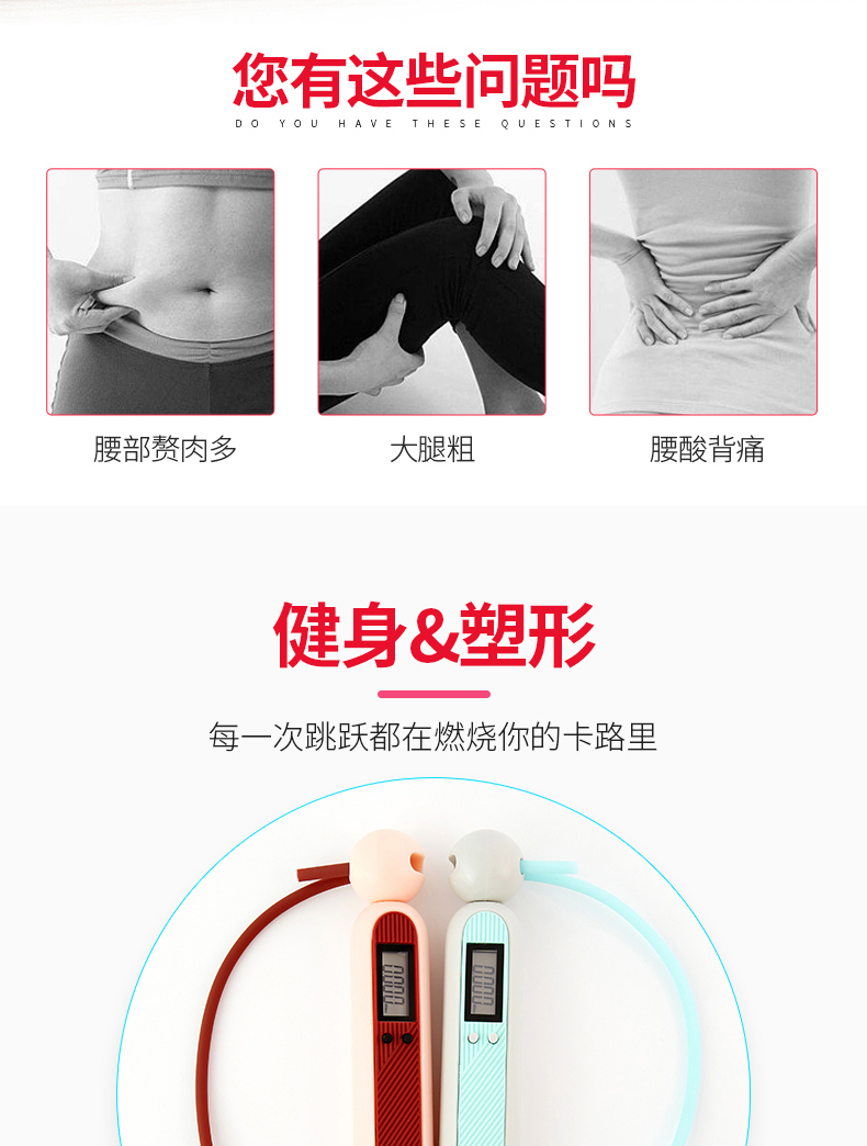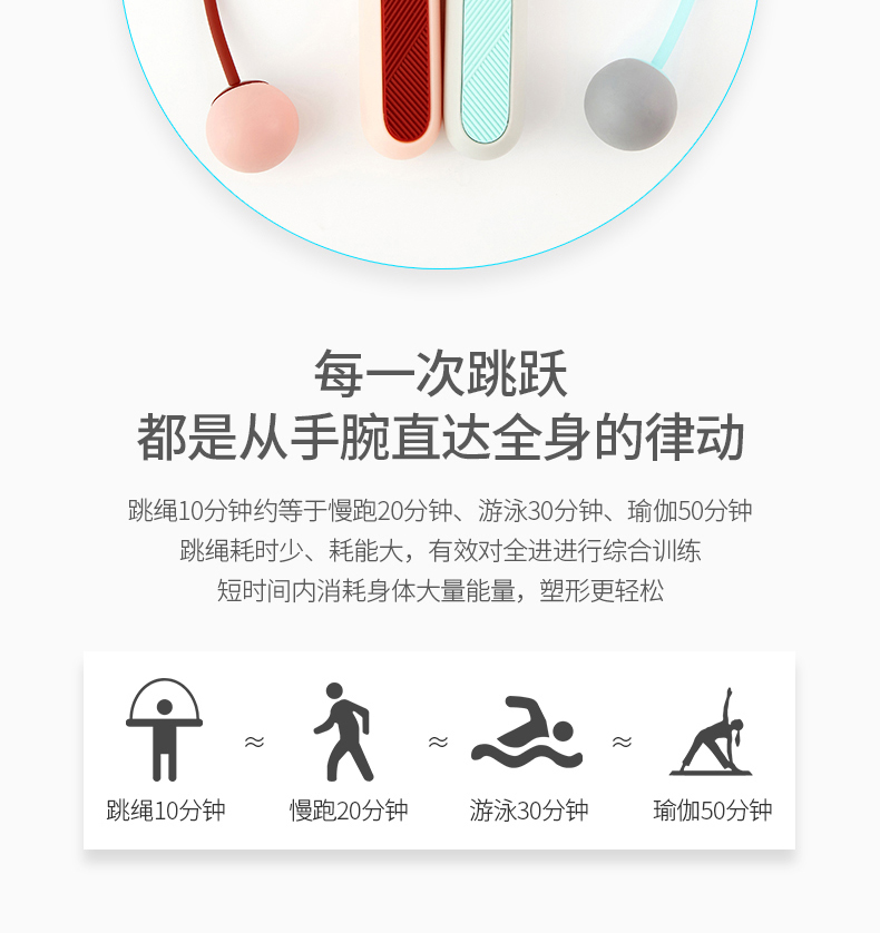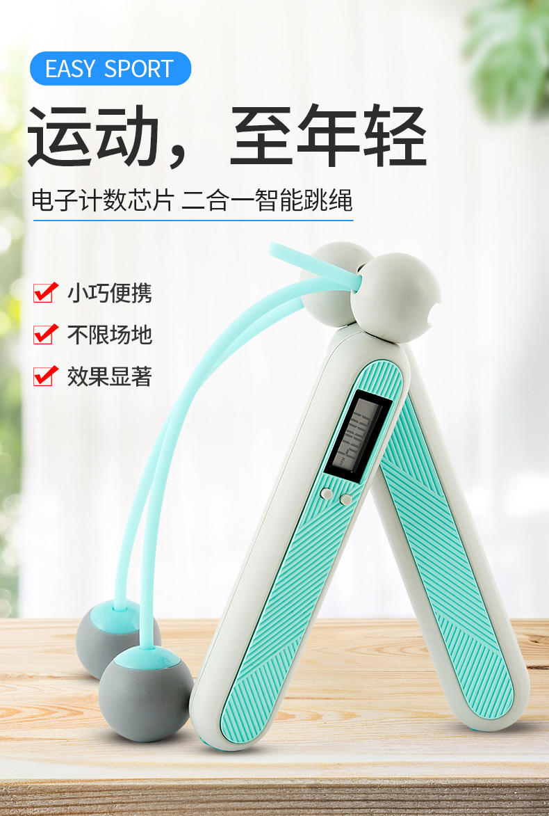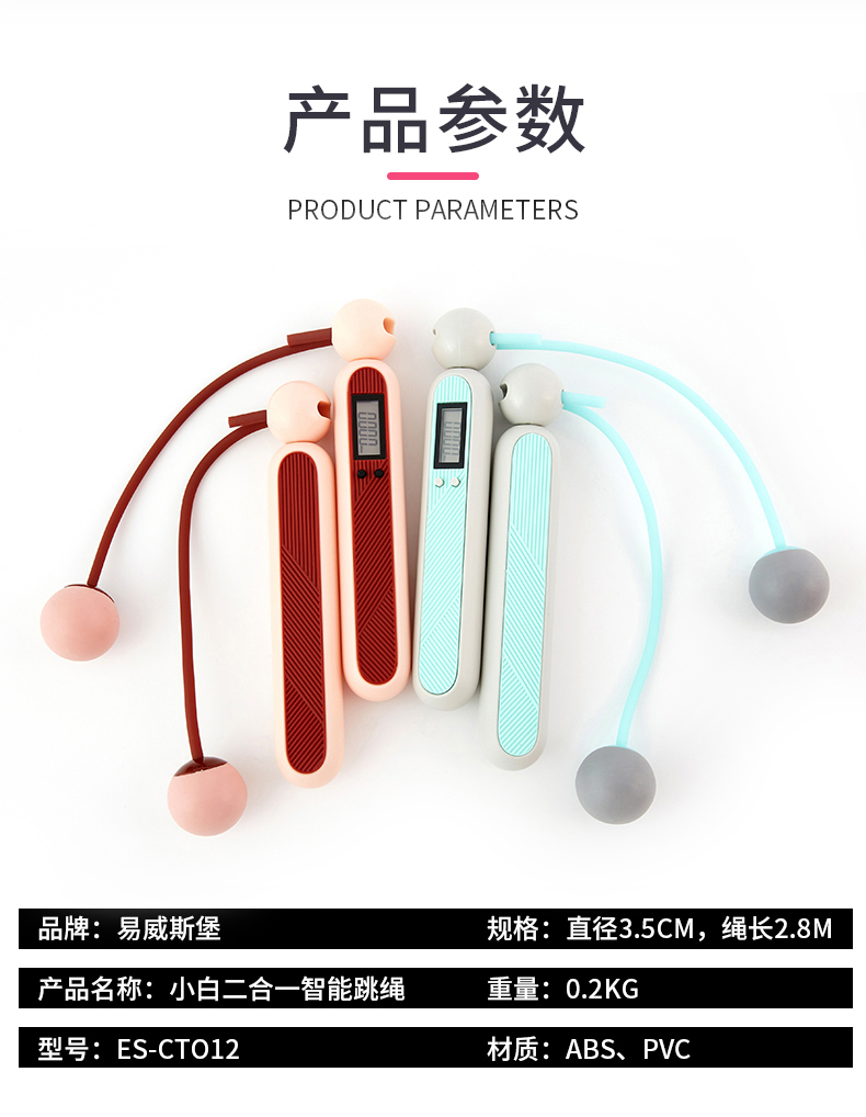 易威斯堡(easysport)小白二合一智能跳绳ES-CT012无绳计数跳绳健身运动减肥训练绳子 浅灰色 灰色